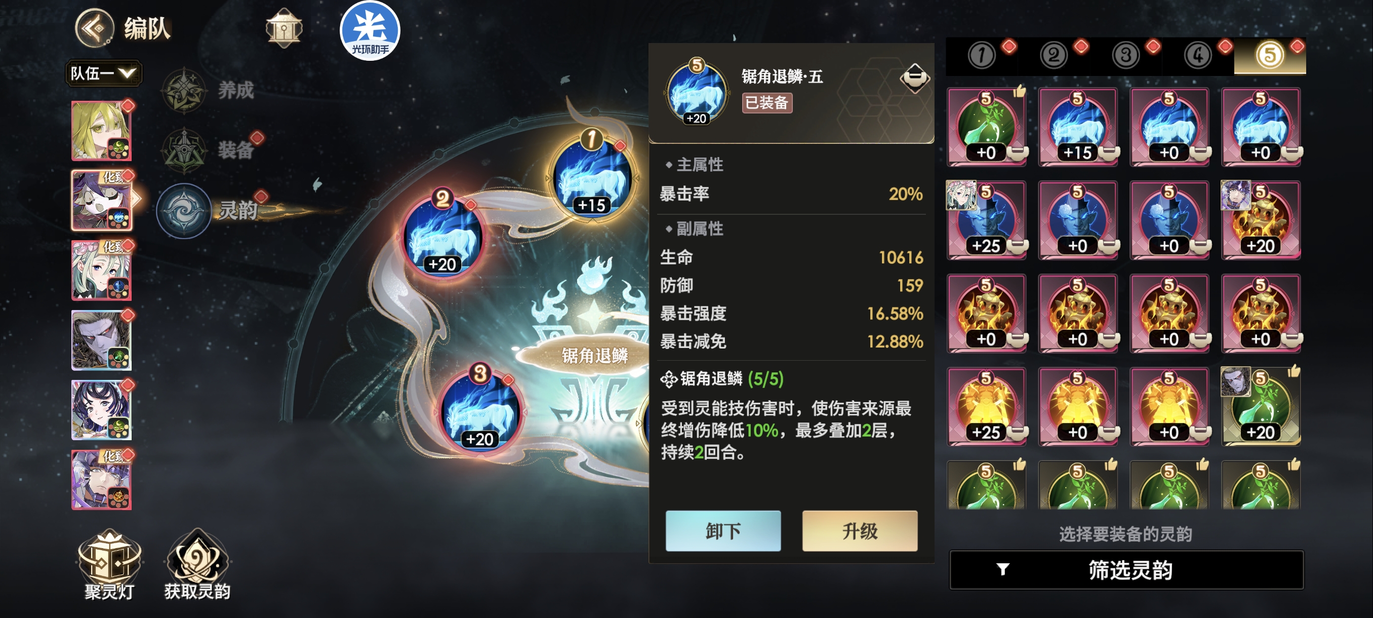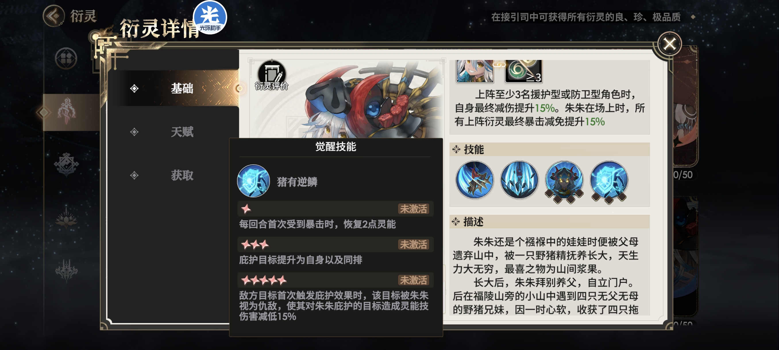 除了防御效果外,朱朱的挂减益能力也非常强,尤其是自身有青春版锁血的情况下,灵韵不再局限于仙木,非常适合携带锯角增强减益能力,是一个在防暴击端和挂减益端双强势的防卫型衍灵。