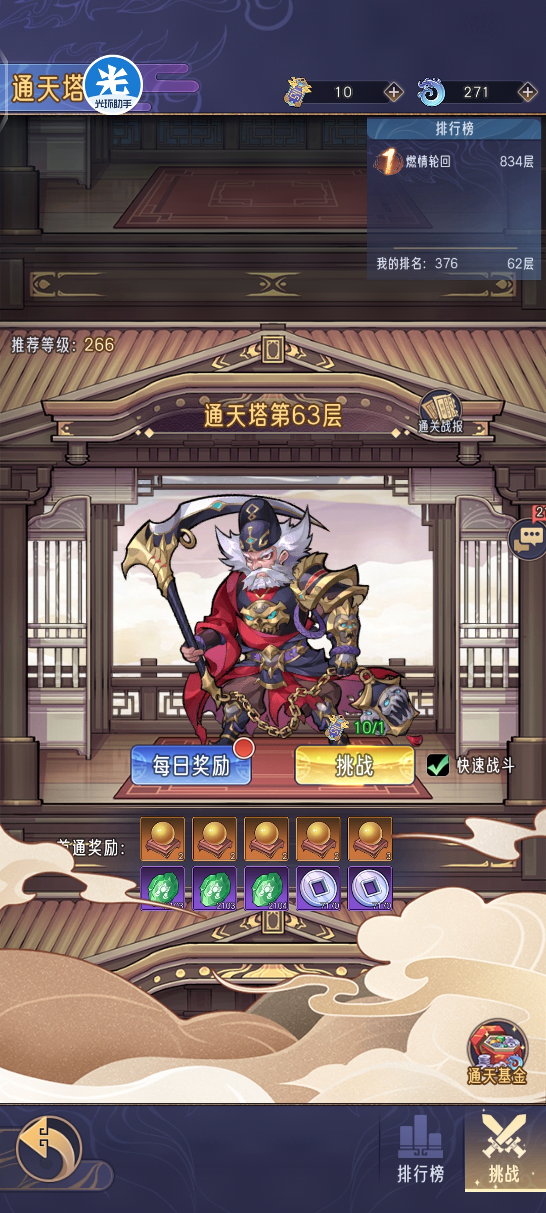 每日爬塔可以获得大量的角色突破丹奖励,每日领取一次奖励,战力越高就可以闯过更多的关卡。随之获得的奖励就越好。