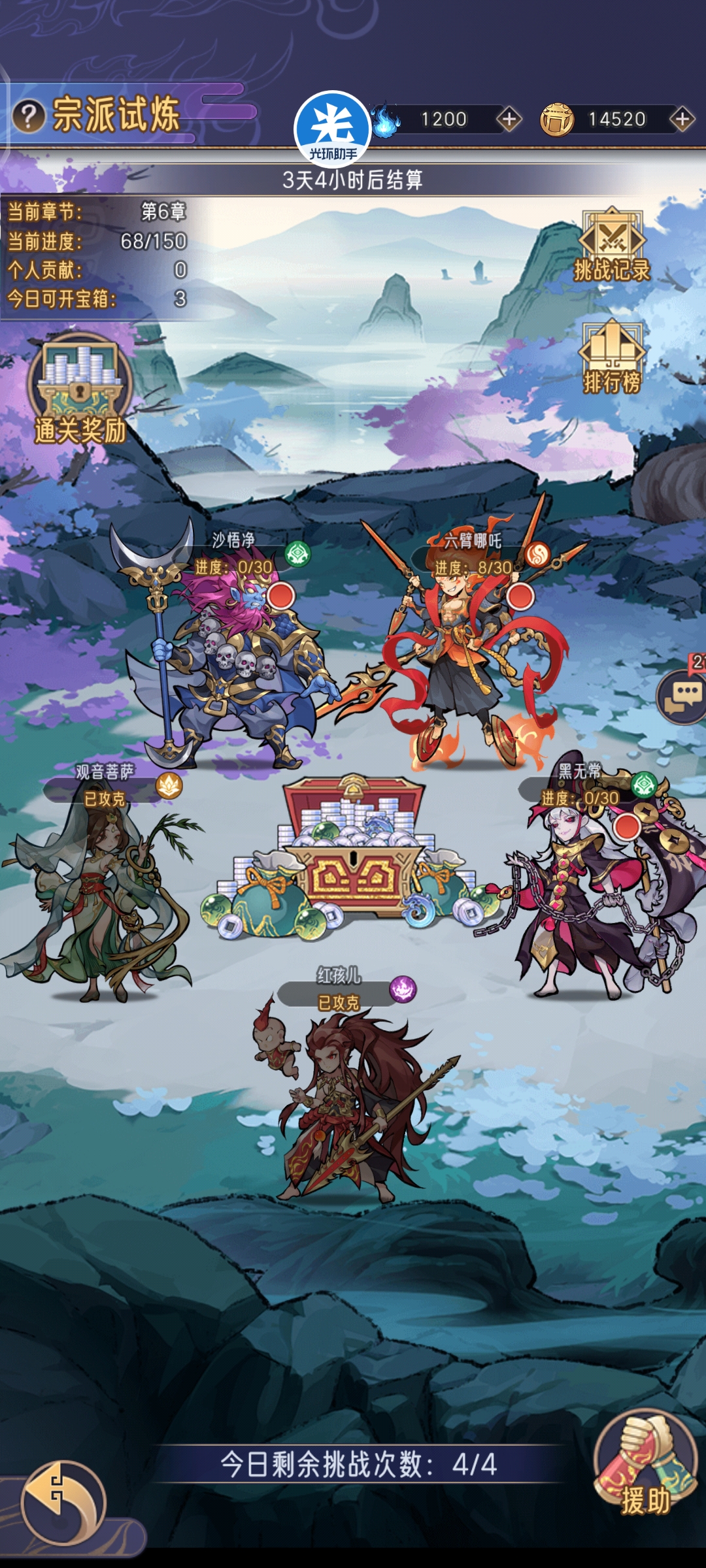 1、所有宗派成员随时可以挑战,每日固定有4次挑战次数,每日0点重置挑战次数。