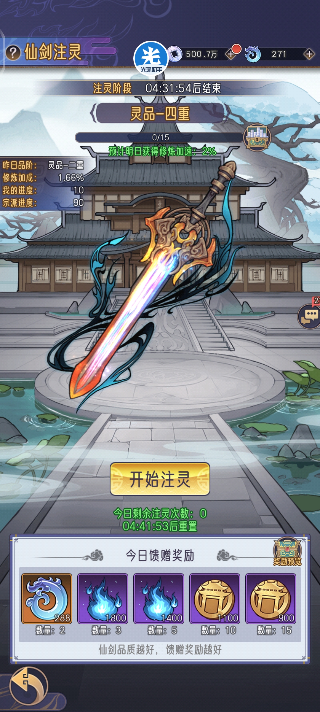 1、每日0:05-23:50为注灵阶段,结算后可领仙剑馈赠阶段。