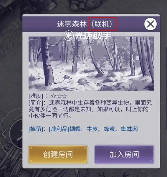 可联机的地图介绍界面,下方会有‘创建房间’、‘加入房间’。创建房间时可以设置密码,成为私人房间,好友查找房间,输入密码即可加入房间一起进行游玩