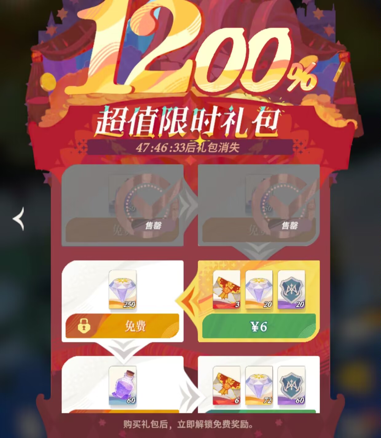三:第三天:限时礼包。第三天在【全英雄招募】中获得史诗角色以后,会出现新的1200%超值限时礼包。