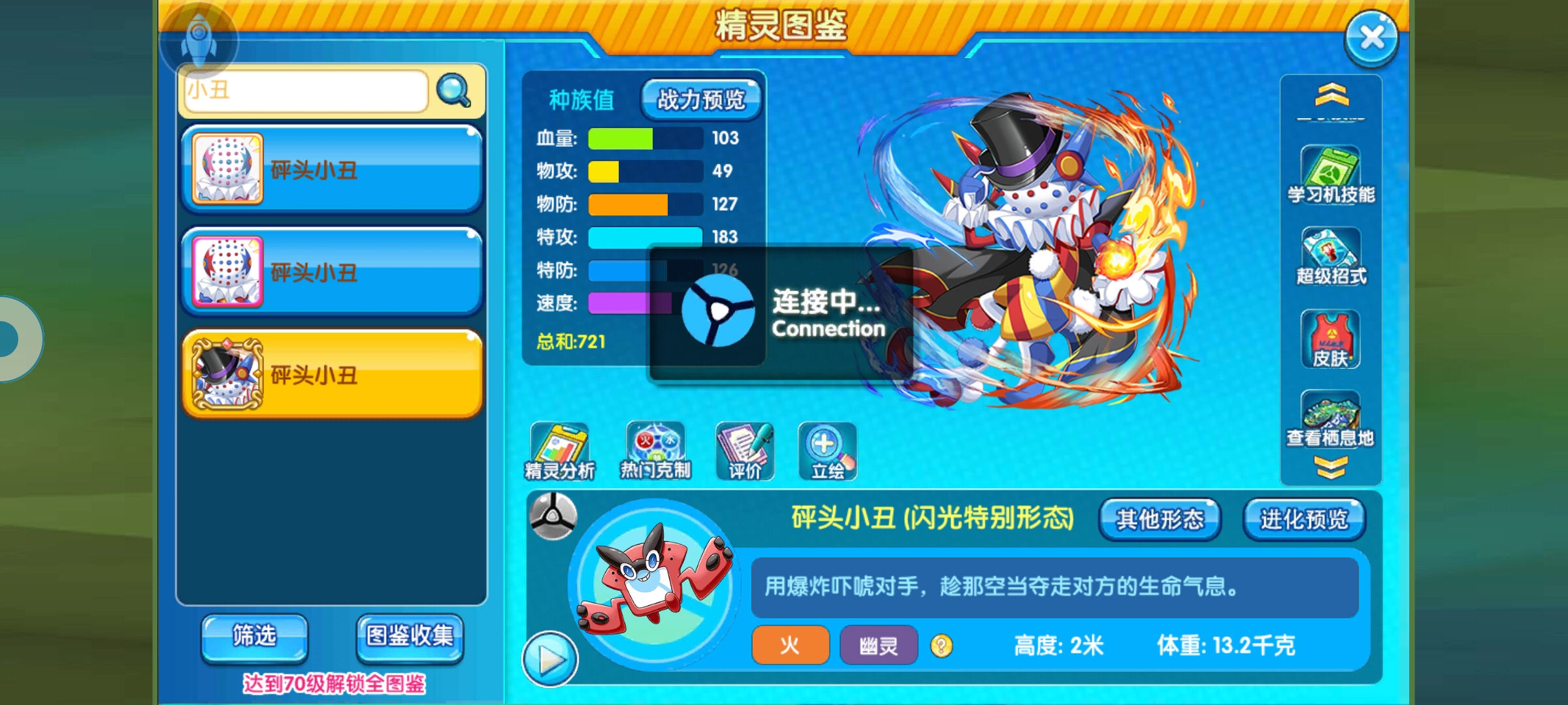 当前pvp环境 砰头小丑是一只pvp极其冷门的精灵,本人pvp打了几千多把都没有遇到过它,所以刚开始也是不了解它的特性跟玩法。当前pvp中低V玩家最头疼最不想遇到的就是乌龟这类了,偏偏这乌龟热度只高不低。在热门精灵榜单中除去前几名的免费强势精灵,乌龟实在太无敌。这次周年又是无敌鹿,干脆不玩热门,冷门养老也是不错选择。