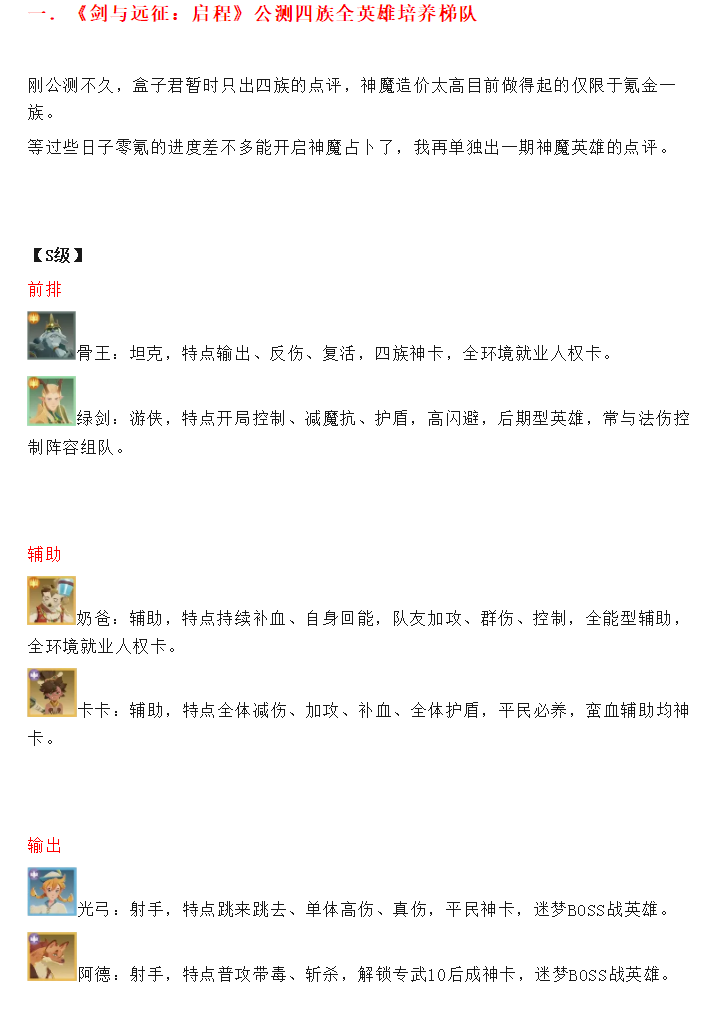 《剑与远征:启程》公测四族英雄点评&心愿单推荐