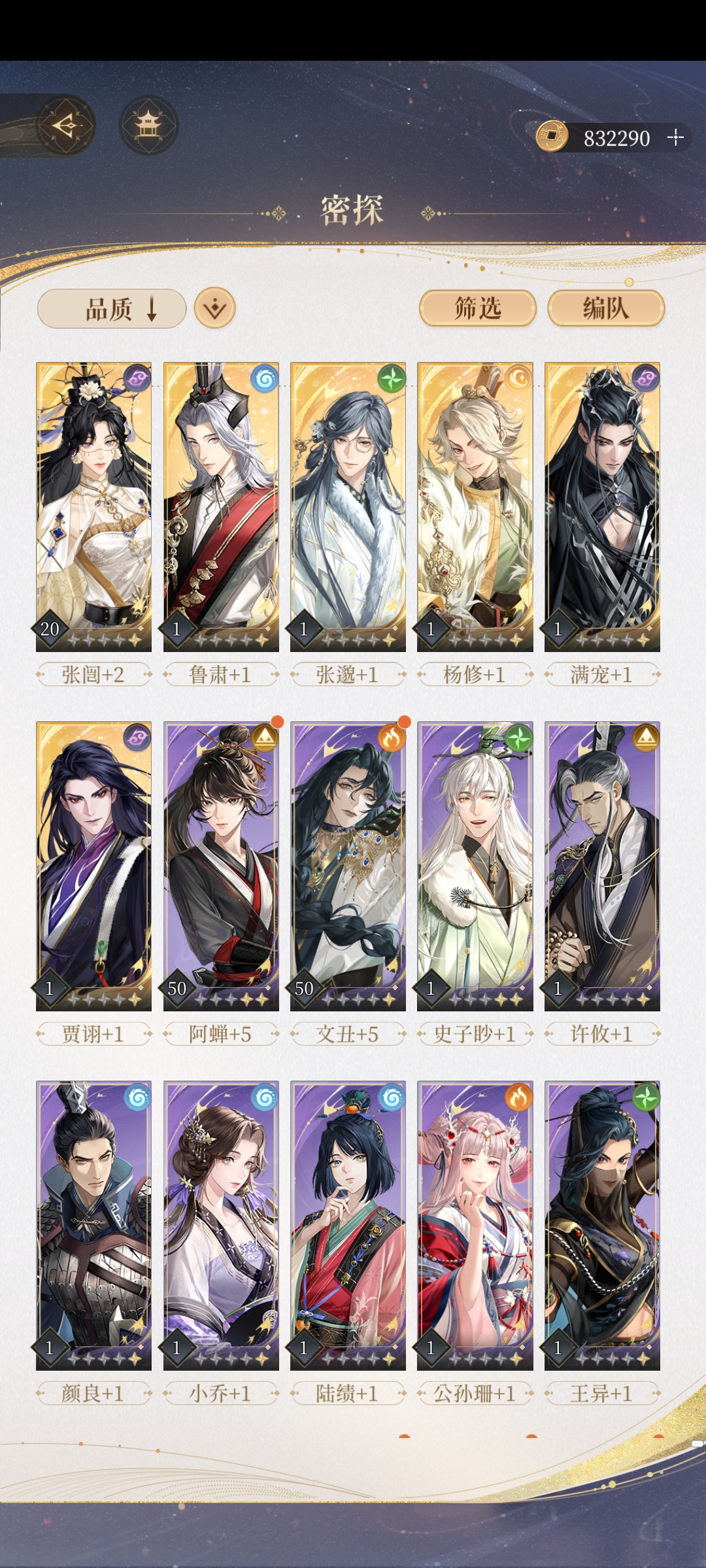 可以,张闿满宠等黄月英可以直接凑dot队,张邈是人权直接养,当主c副c都可以,杨修和阿蝉养起来当c,鲁肃和郭嘉就不用养了,紫卡狮子喵颜良陈登养