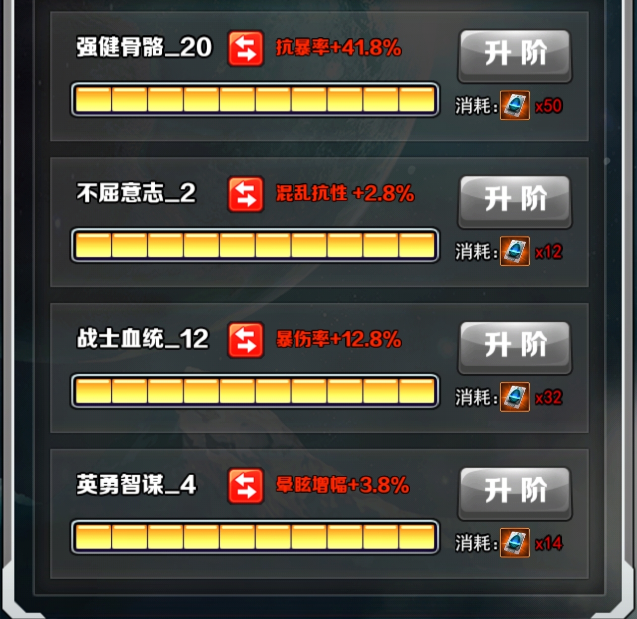 解析:免疫眩晕。这个眩晕是控制的首要而且是最烦人如果说你被眩晕了,那你就基本动不了混乱的话,你还可以动起来,并且驱散然后抗暴加50 这一方面加的是坦度