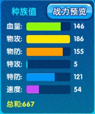 种族值分析:阿勃梭鲁拥有极高的血量和物防及物攻,但受特性毛皮盔甲的影响,我们一般选择走极限物防的玩法,能让阿勃梭鲁的坦度提升几个层次。