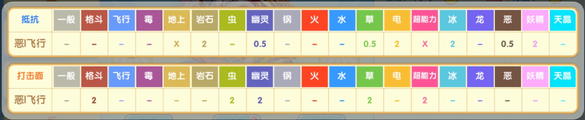 属性分析:惧怕特攻技能,弱岩石,电,冰和妖精系。妖精系宝可梦在现版本也是处于强势期,可以出一些毒系及钢系宝可梦进行相应的联防。