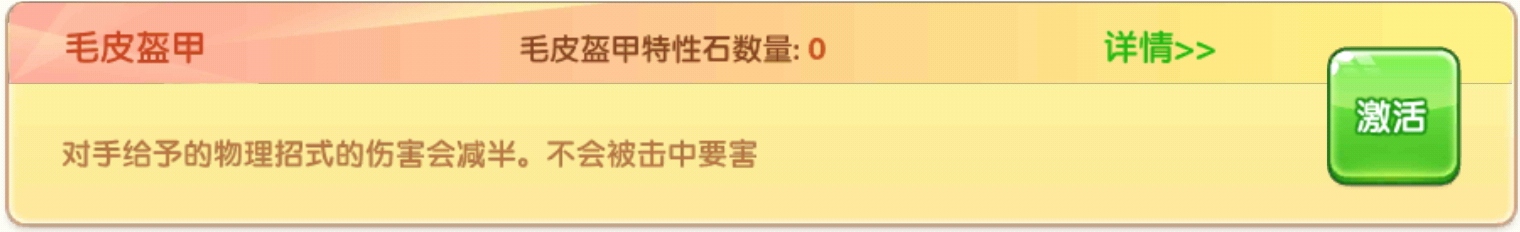 ·对手给予的物理招式的伤害会减半,不会被击中要害