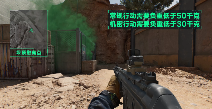 在地图东北方的山顶高点,还有一个限制重量的撤离点,需要干员全身物资达到限重标准才可以撤离,如果不小心超重则只能忍痛取舍。