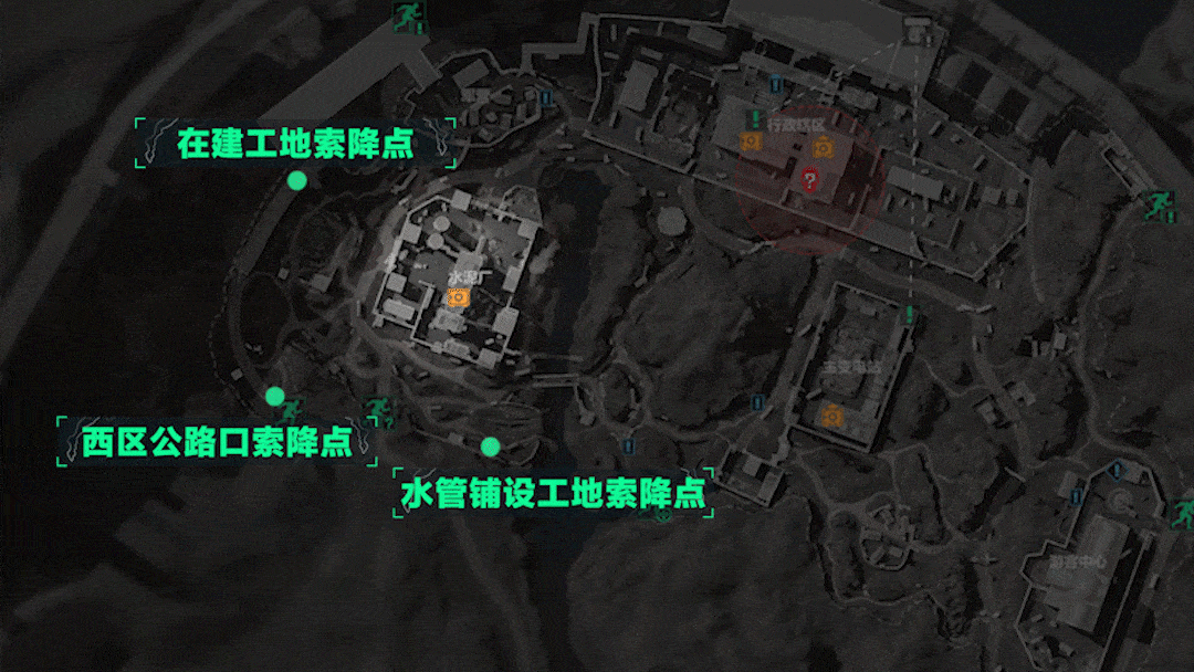 但要注意,在军营地下通道以及军营路边索降的干员虽然靠近行政辖区西侧,他们也可能会选择先前往军营搜索,请不要放松警惕,当然如果你刚好索降在这两个点位并且配备了较好的装备,建议还是优先进攻行政辖区。