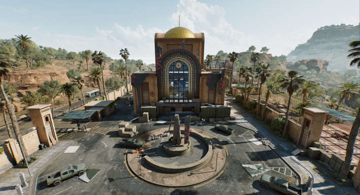 这里推荐从滑索到达二层平台,观察并抓住机会向行政辖区的其他小队发起进攻,或者直接从山顶的滑索前往辖区内的停车场。