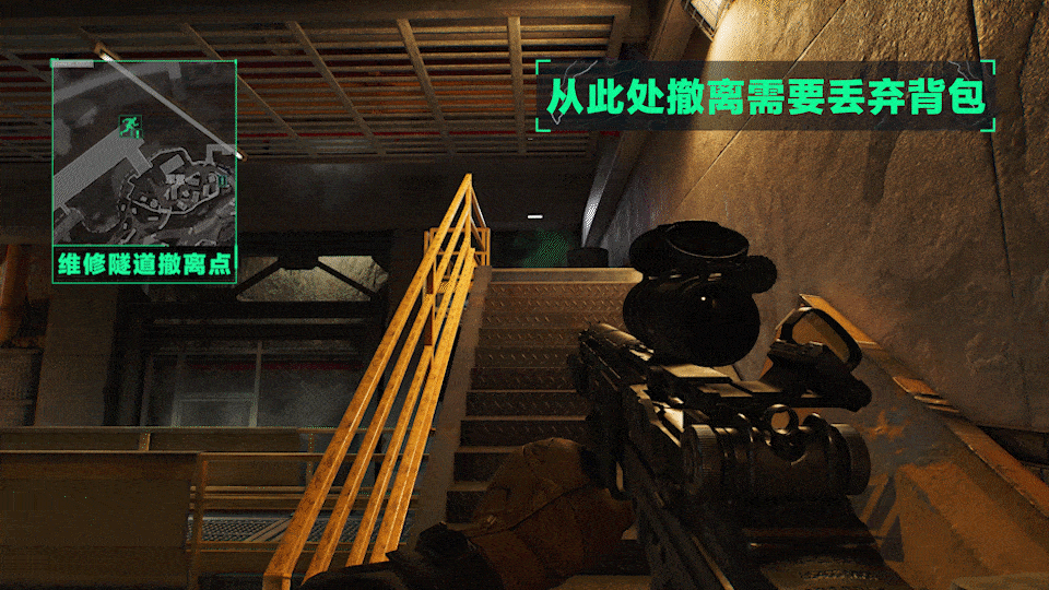军营北侧的维修隧道撤离点,需要干员扔掉背包才可以撤离。