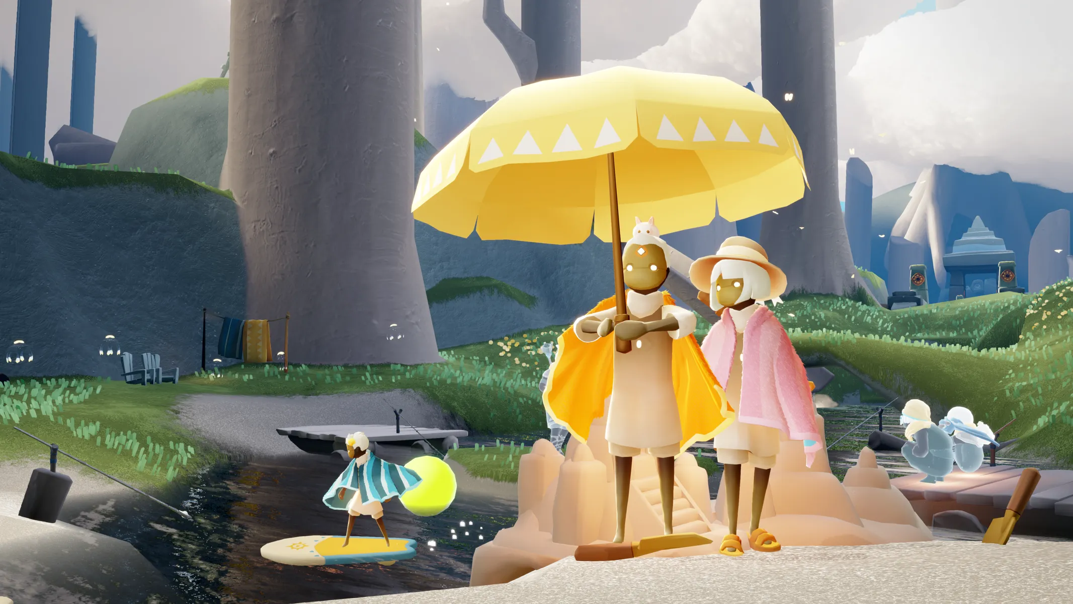 你可以穿任何你想要的衣服,因为你晒太阳,但今年的活动带来了新的项目,以选择完美的纪念品!收集活动货币(每天六个)来解锁蝠鲼漂浮,更不用说游泳衣了。该活动还推出了一款质地恰到好处的斗篷,让您的天空小子在阳光下保持凉爽,另外还有一对受活动金色光芒启发的耳环,均可在游戏内商店购买。