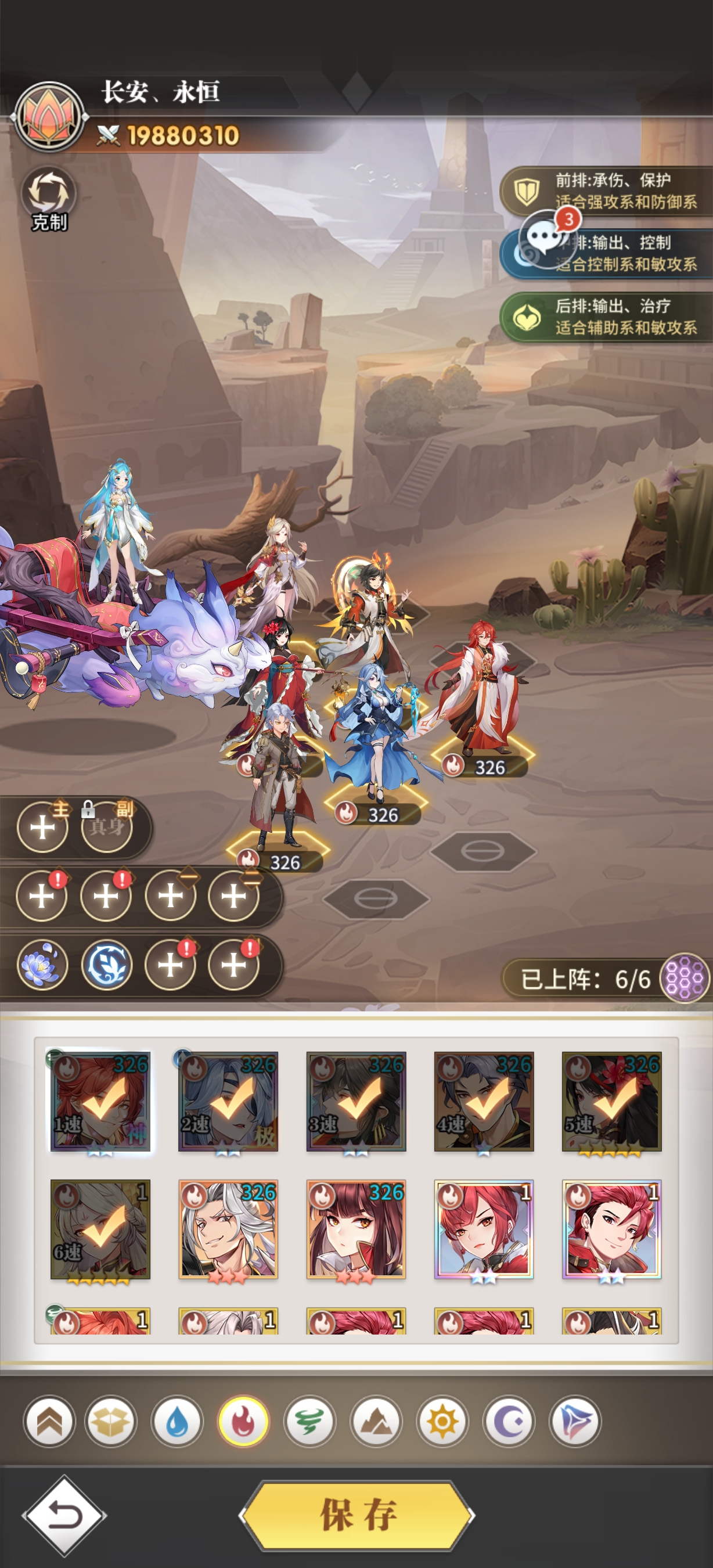 5.实战解析:蓉蓉一速,队友进行增幅,增加攻击和免伤,然后二明出手恐惧前排,物理防御下降,凤凰出手打第一次AOE伤害,生命出手对魔鲸和白虎进行解控,最后魔鲸出手控制对面和打出伤害,最后白虎补满爆发伤害。