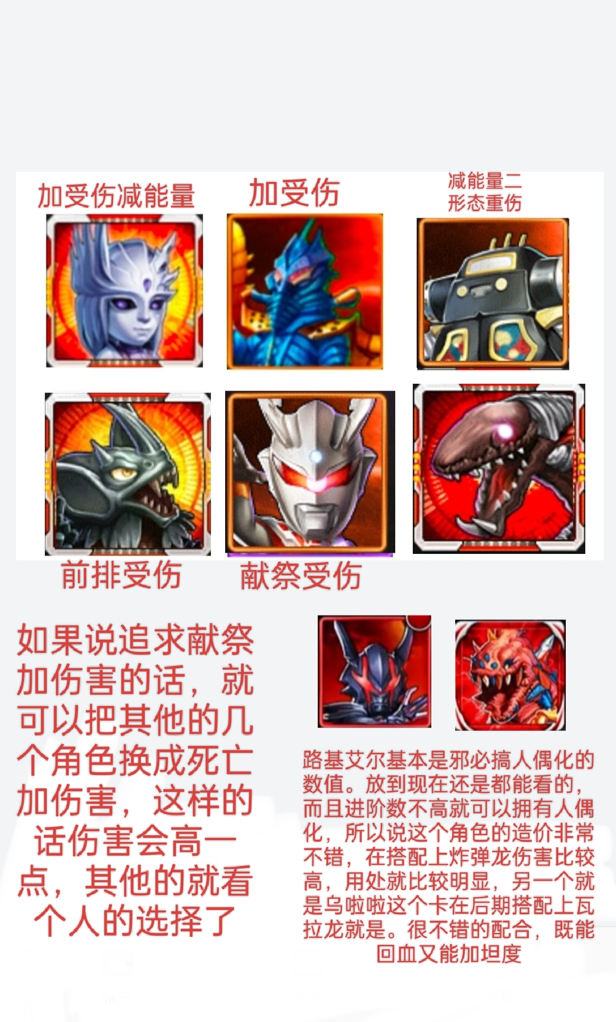 解析:一点能量给自身加10%的暴击率,开局能量根据自己的原金来计算保底是40%的暴击率,这个免伤没什么好说的。其实没有啥用,但是怪兽队友放能量计的时候可以给自身加能量