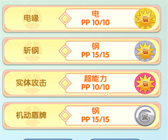 至于钢属性的本系技能挑选就比较多了,我这边挑选的是斩钢,因为它是多段伤害,可以打一些这个结实特性的效果,然后我在测试的时候还发现了新专属带来的回血效果,好像多段技能可以多触发,也就是说可以多回血,其实也可以考虑用核磁共振流星闪冲和飞弹拳。至于最后一个输出位置,我是使用了这个超能属性技能,因为在下个版本当中,一同加强的还有武道熊师由于更新之后那个精灵是格斗属性,所以刚好可以进行克制,虽然也打不了对面,但是总比坐等死好。
