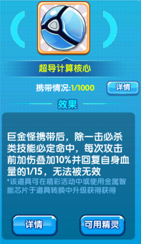 巨金怪的新专属和水箭龟的一样,可以在版本更新之后利用老专属升级,老专属的话可以通过十连扭蛋活动礼包获得最后讲一下巨金怪的具体选择,就是闪光和普通。首先我个人认为普通属性抗性要比闪光的更好,而且更关键的是普通形态,它是电属性呀,这个属性性我就不用多说了吧?搭配龙皮卡丘再搭配铁臂宝可以走一个辅助两个输出的套路,也可以是两个辅助一个输出的套路,都是没有问题的,但最大的缺点就是自身特防特别低,而且特性触发,要受到对方一倍以下伤害才能够触发,如果受到特攻的克制伤害,那就当场爆炸了,当场就没了,所以说一定要注意。