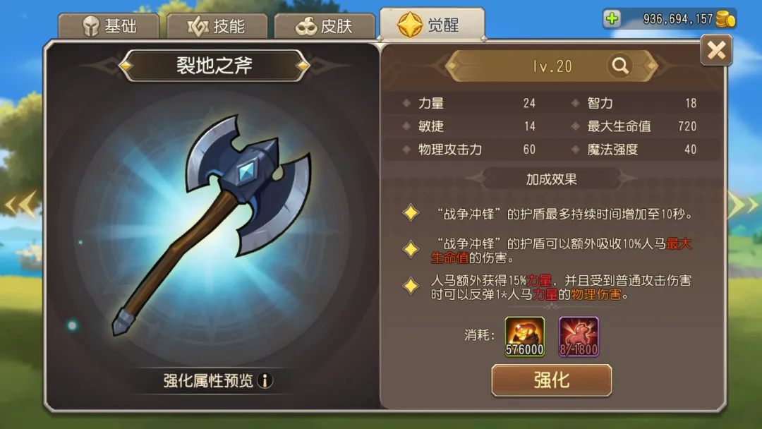 如上图所示,分别为人马未觉醒/觉醒20级/觉醒25级的属性一览。从面板上来看,觉醒后的人马血量突破了五万,物理护甲也达到了七百点。