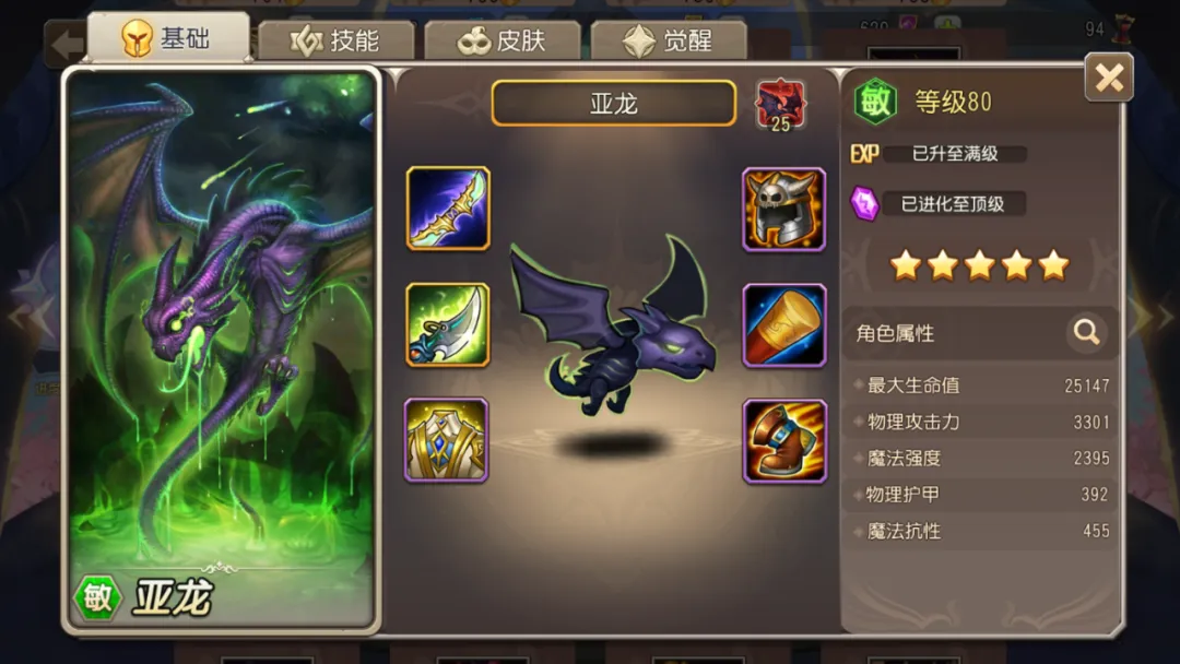 如上图所示,分别为亚龙未觉醒/觉醒18级/觉醒25级的属性一览。从面板上来看,主要是攻击力得到了提升。