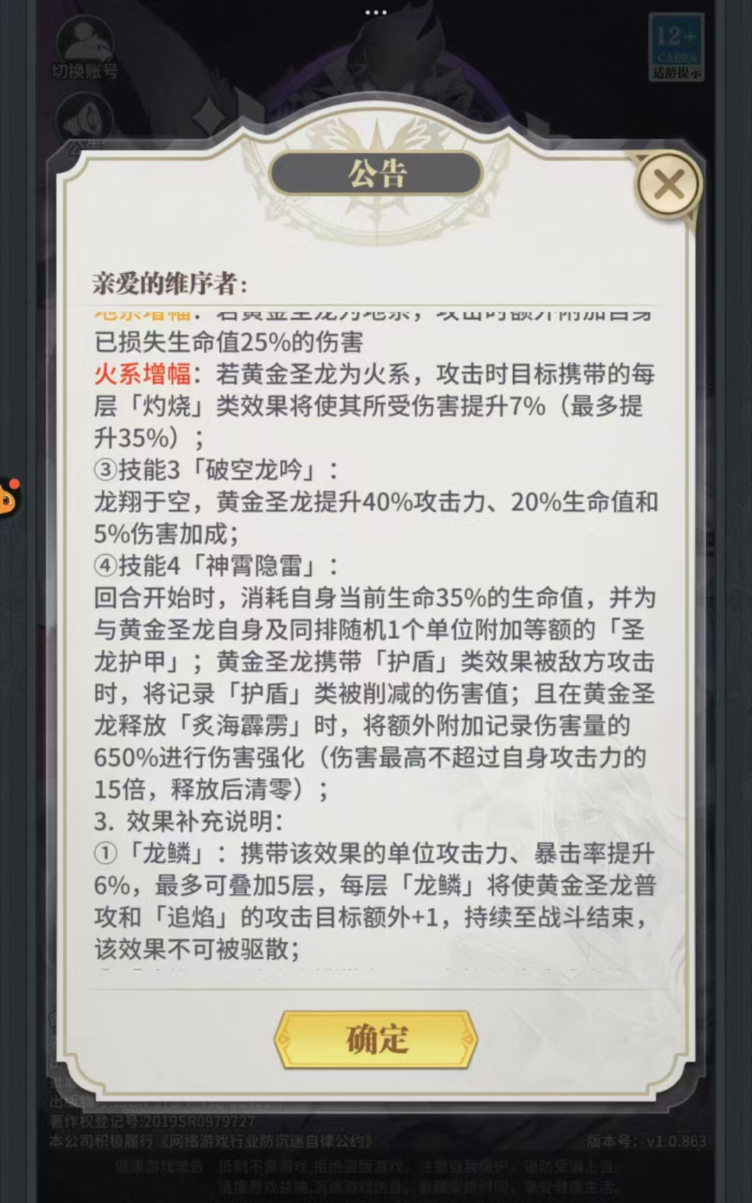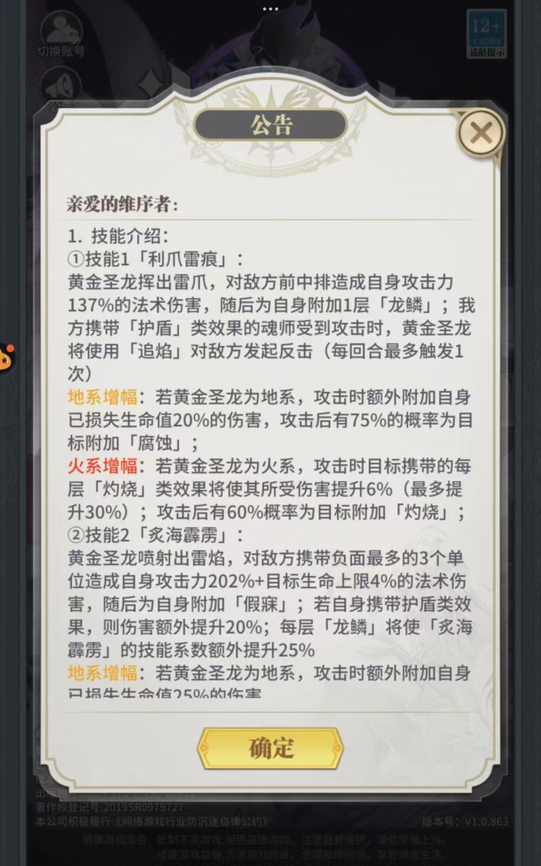 (一)第四技能:每层龙鳞+1攻击目标+1,也是打得够久,技能就是全体AEO了,相当暴炸,基本上高战都是要打好几轮的,可能以后高战中非常好用,物连还可以快速启动。