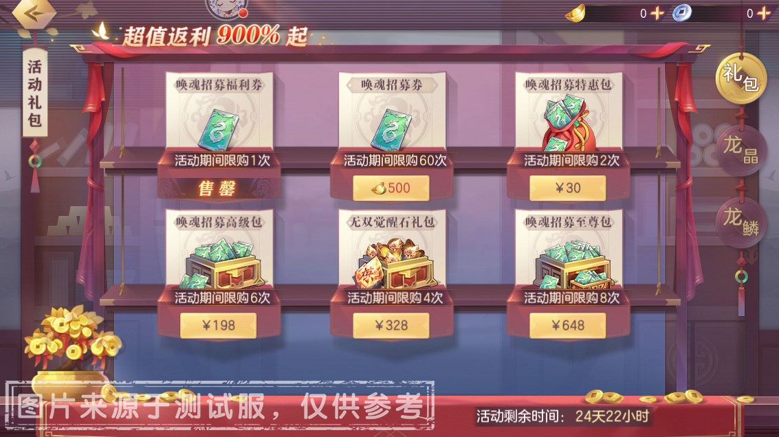 活动期间,限时上线唤魂特惠礼包,超值返利900%起!