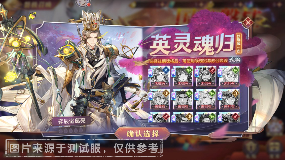 在召唤「磐极曹仁」的同时,小将军们可以对往期的魂将进行招募,在往期魂将中额外选择一位,使用「唤魂招募券」进行招募,一旦选择将无法变更。选择完毕后可在【当期魂将】和【往期魂将】中切换招募!