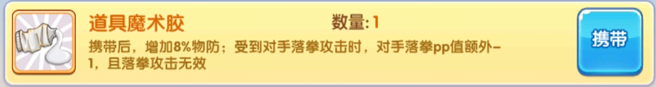 智挥猩携带道具魔术胶可以联防一些喜欢落拳的骚扰型宝可梦,为队友保驾护航,同时避免落拳带来的一些追加效果,更好的扩大自身的生存空间。