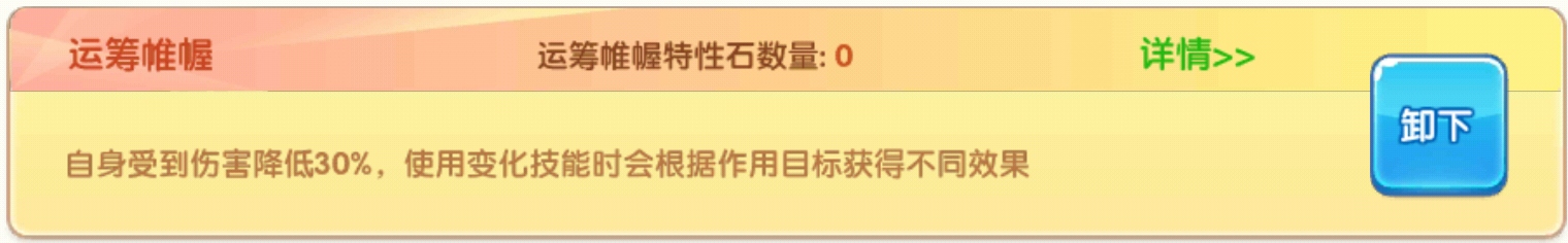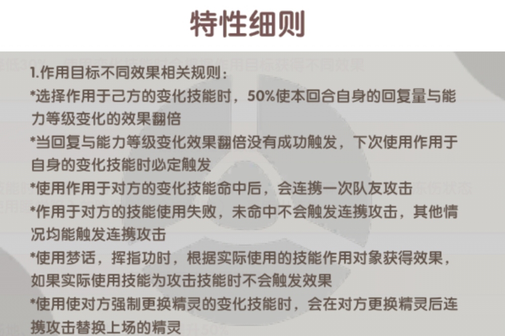·自身受到伤害降低30%,使用变化技能时会根据作用目标获得不同效果