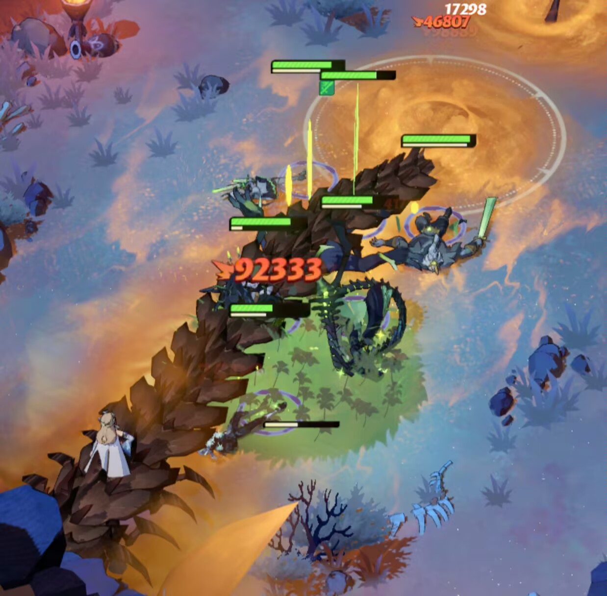 沙虫本身是比较灵活的,在加上有降速,近战角色其实并不适用,而且沙虫还会对靠近自己头部的英雄造成额外的伤害。
