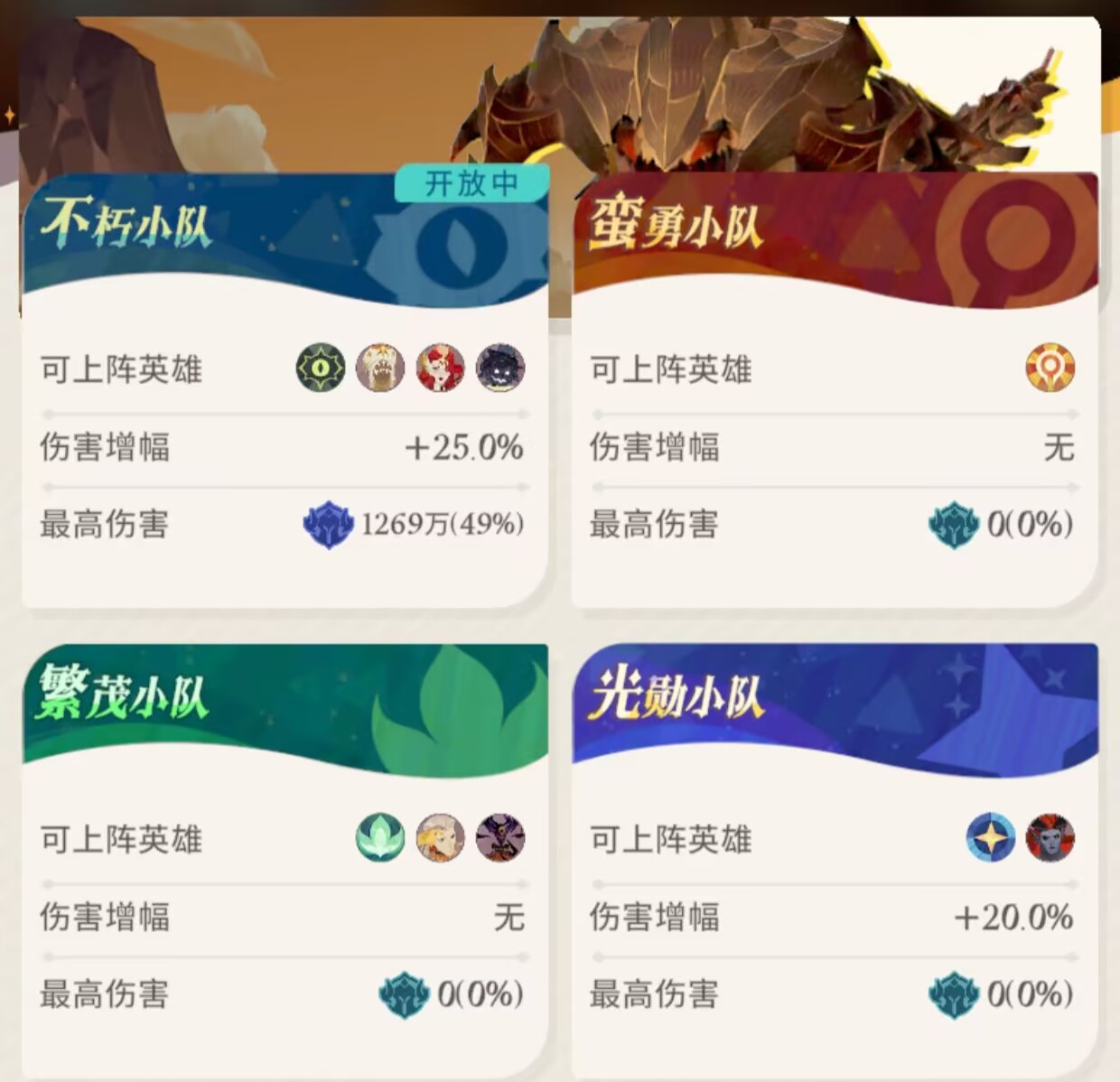 ②【全线总攻】阶段:四个首领每天都可以挑战。