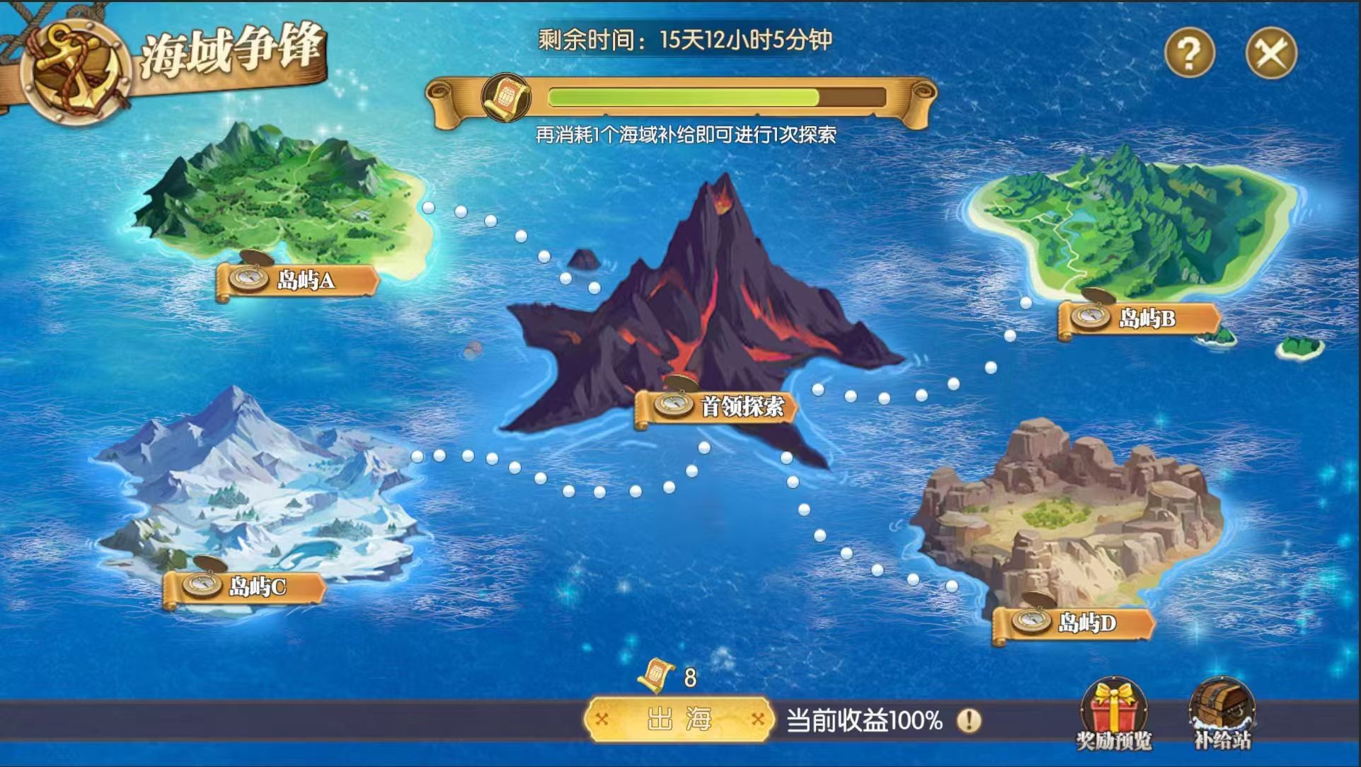 消耗海域补给探索海域,寻找宝藏或击败怪物获得奖励。