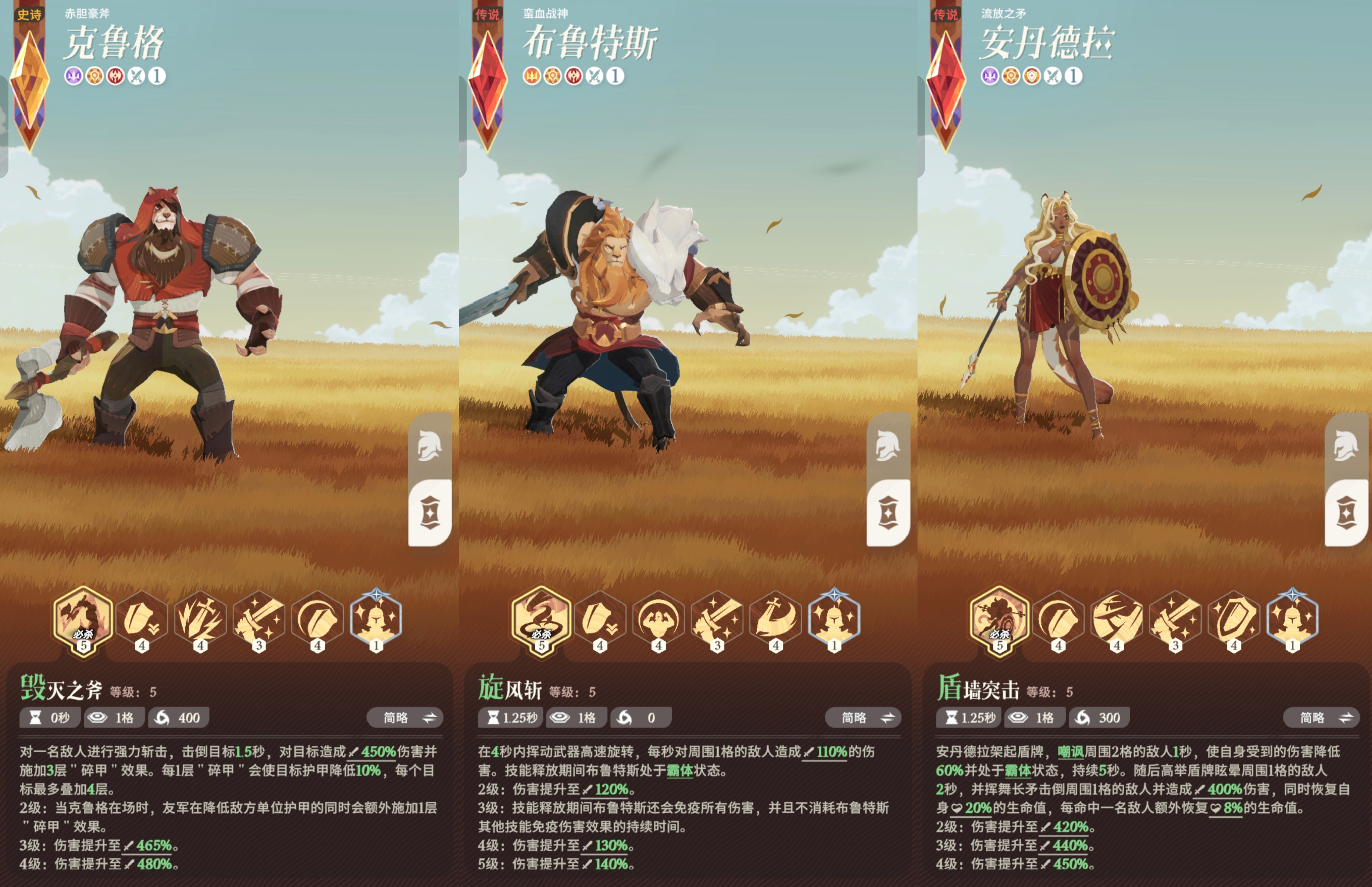1:坦克优先级推荐:斧熊>狮子>豹女。斧熊拥有强悍的破甲效果,可以大幅度增加队伍物理输出,肯定是优先选的。
