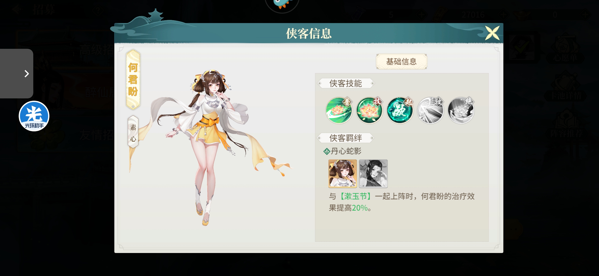 中毒阵容奶妈,何君盼被动提高中毒伤害可以保证中毒阵容持续消耗能力,同时作为奶妈,何君盼拥有全体治疗+残血治疗+毒伤治疗多种治疗方式,可以保证阵容续航能力,提高阵容换血消耗能力,但非中毒阵容不推荐上阵,何君盼技能过渡依赖中毒层数,仅作为奶妈不如考虑黄缨