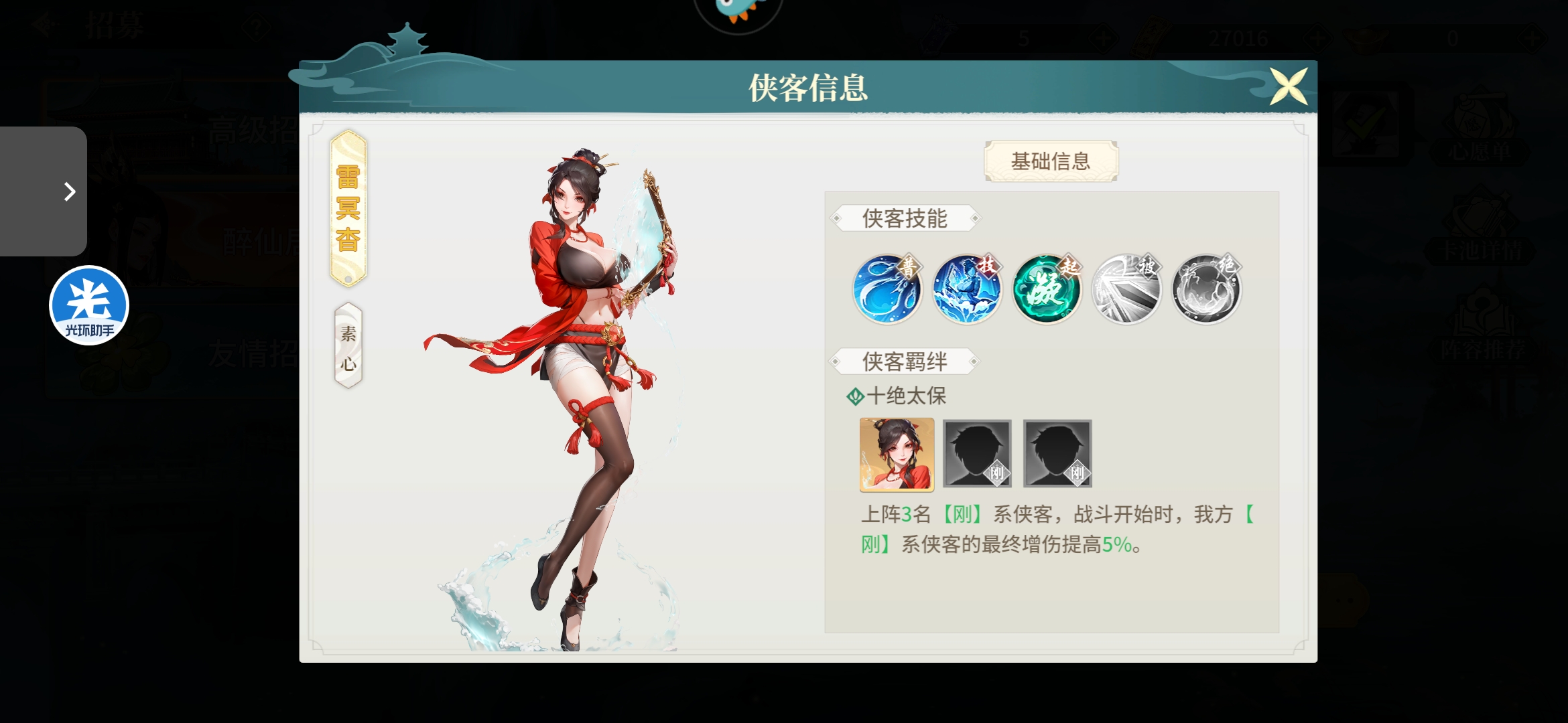 治疗型武将,雷冥杳奶量并不足,绝技仅能治疗血量最低单位,无法兼顾敌方群攻时的阵容续航,而赤练印记治疗或者传导效果不如群体奶更直接,不如七天乐赠送的绝世黄缨