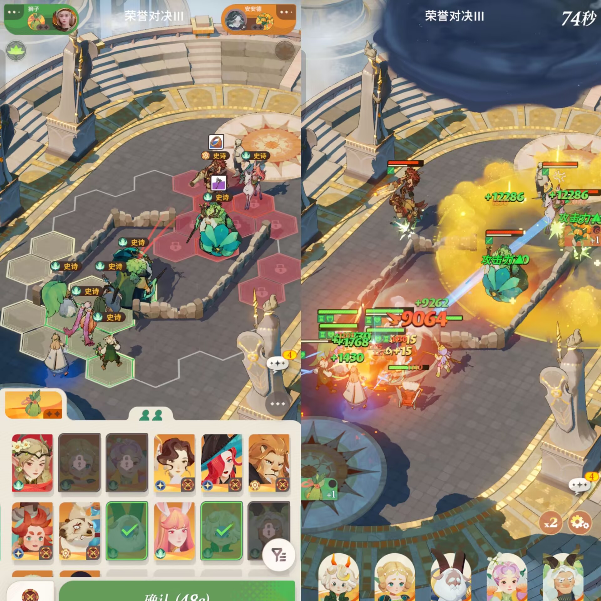 因为前期,比如第一轮到第三轮的战斗我们不一定就能刷出老师、荷叶 、婆婆 。在没有核心英雄的情况下,我们可以暂时用其他角色替代一下,比如狮子上面推荐的英雄,灵活的去变通很重要。