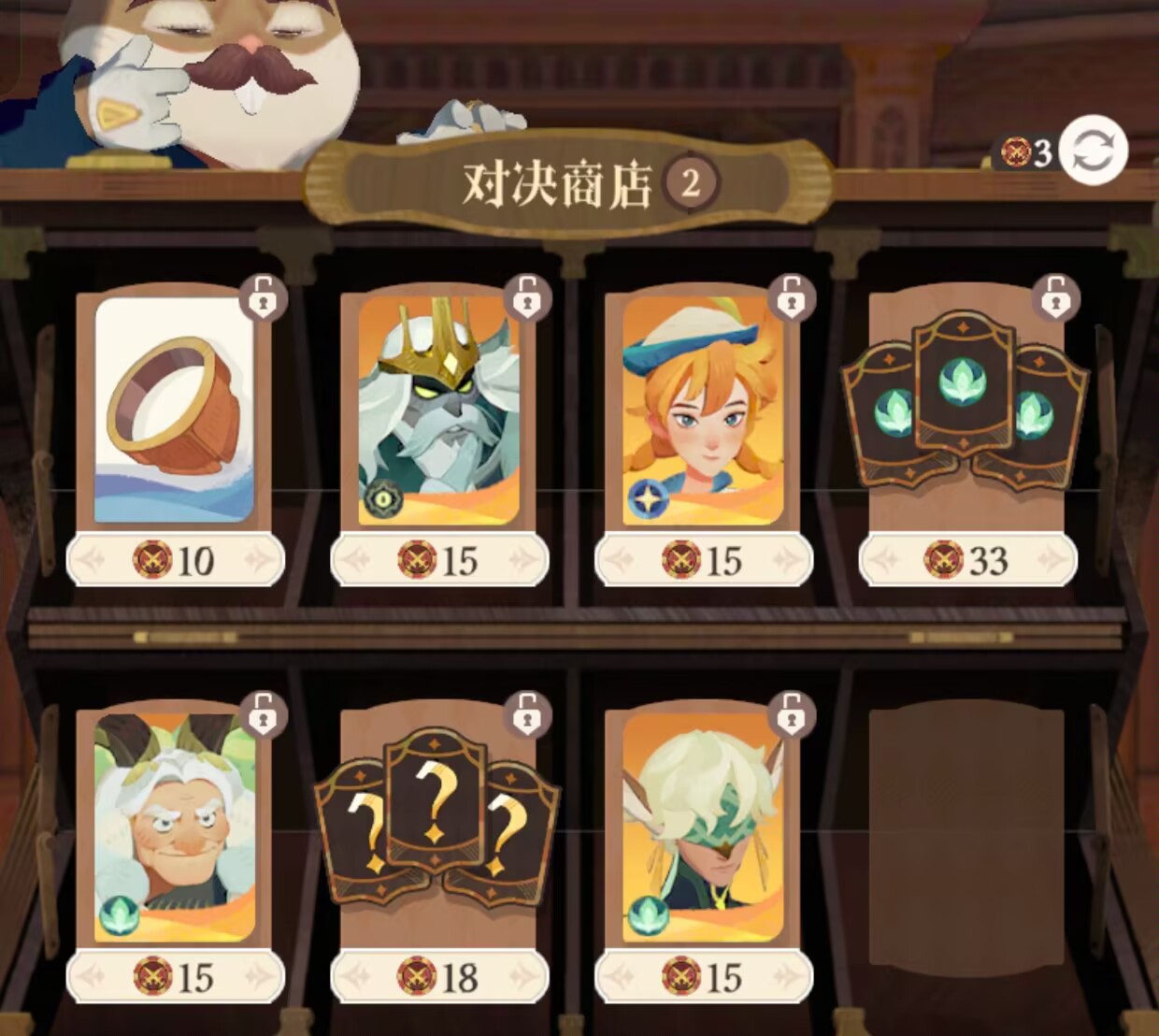 如果看到有婆婆 绿叶 老师 小羊 老羊这些我们阵容的核心英雄,我们必买哦。