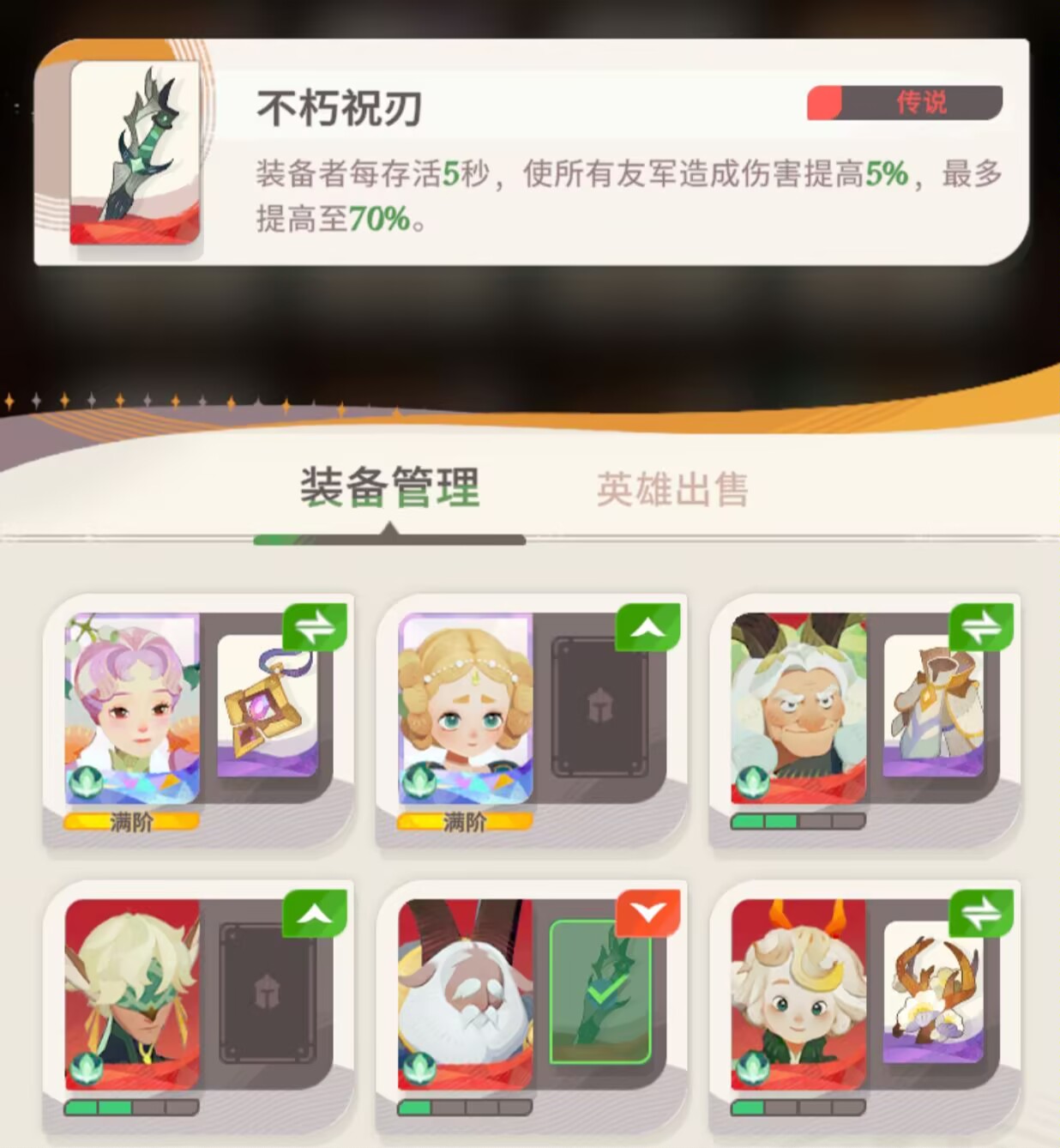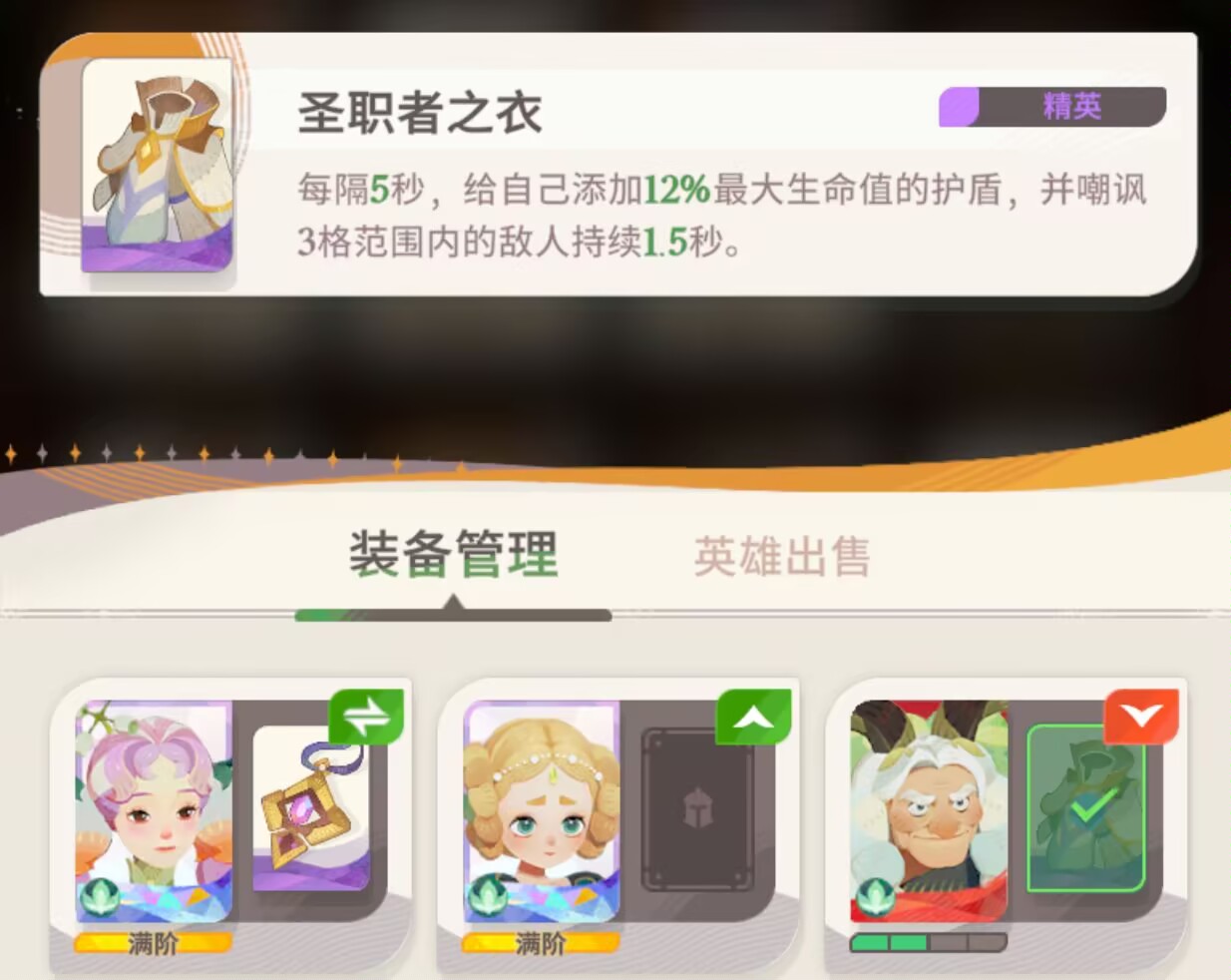 如果没有我们阵容需要的装备,还是以提升英雄的品质为主。