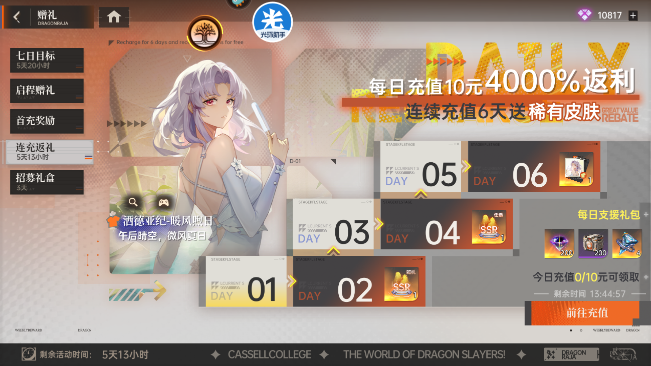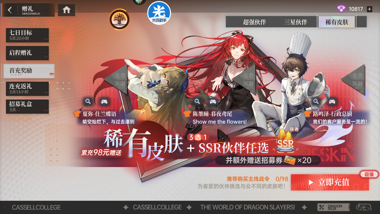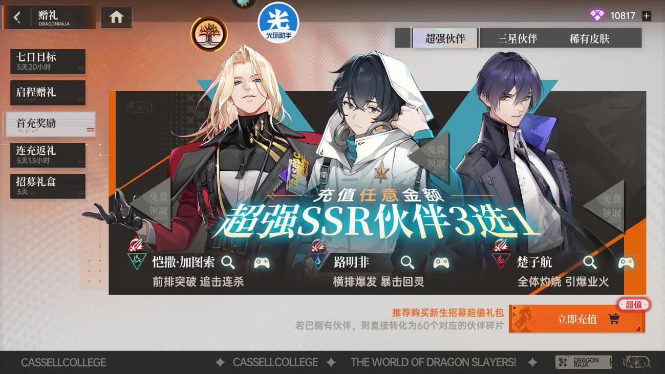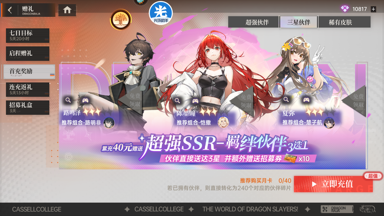 点评:选择主C后可获得对应羁绊伙伴和10连抽。对于刚进入游戏的玩家,这是拉开与0氪玩家差距的有效方式。