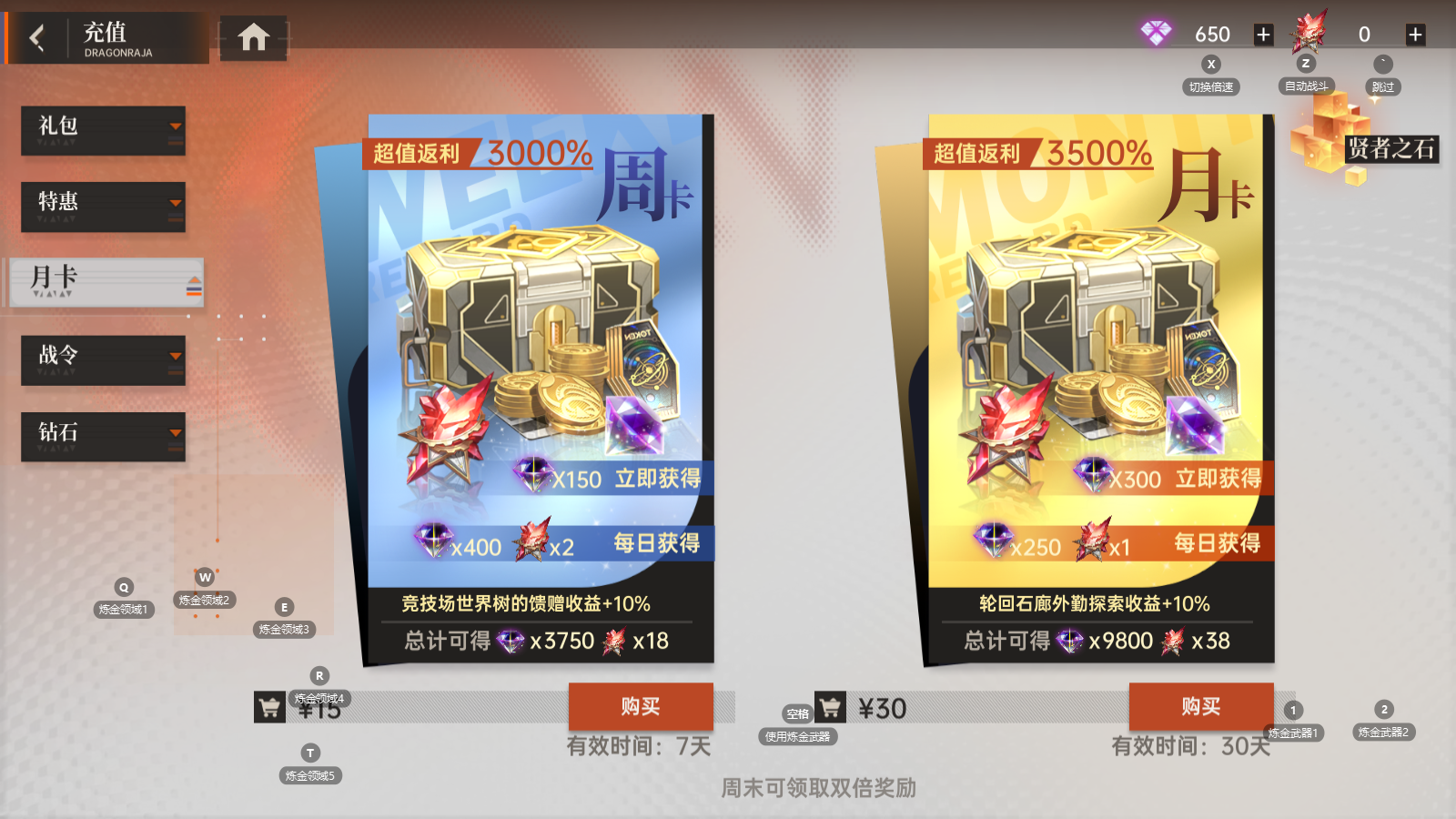 1.首当其冲的就是每个游戏的月卡了,基本上是每个游戏打算长期玩的比选项目了,那我们龙族的月卡呢?