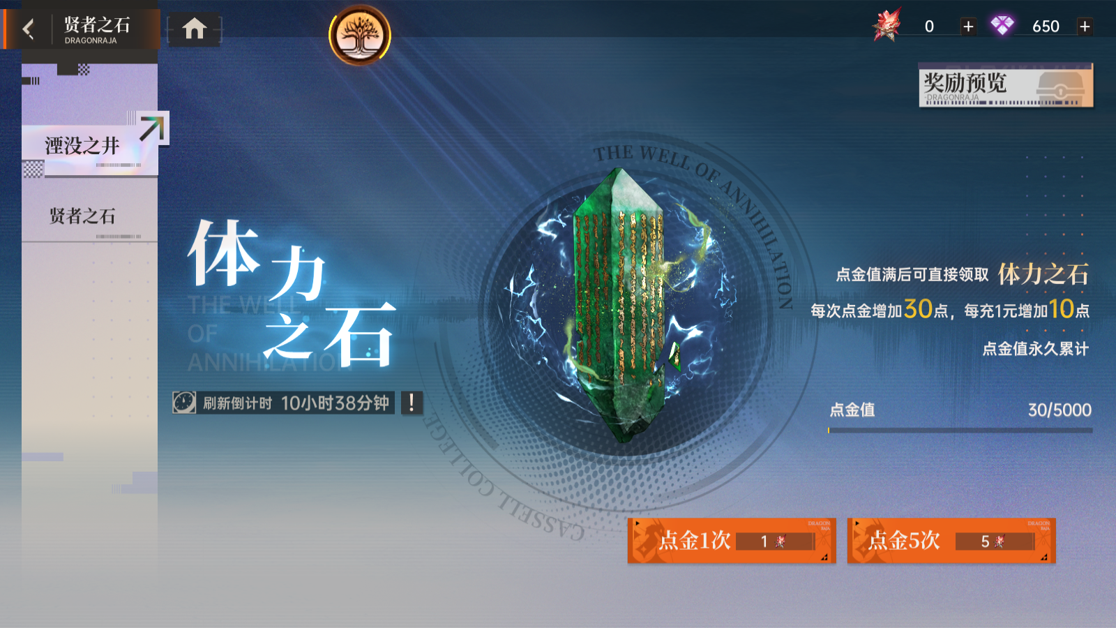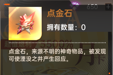 可以看到和正常的月卡比多了个炼金之石,而炼金之石的作用是在湮没之井中进点金,点金可以获得各式各样的强力贤者之石(这次是体力之石,可以有效的帮助兄弟们在前期升级以及开荒)