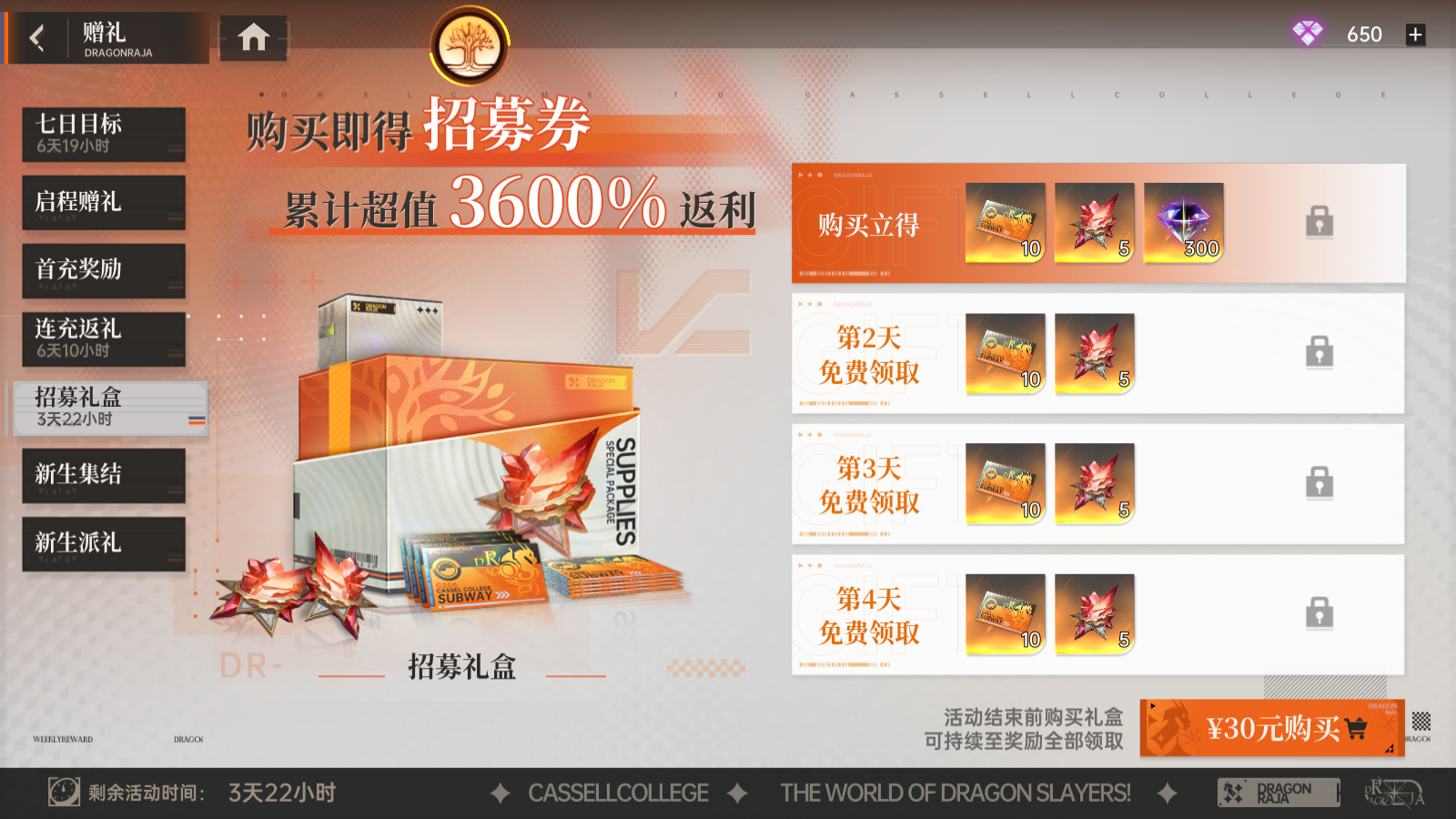 4.在连充返礼的下面还有一个招募礼盒,这个我先给兄弟们放一下图,兄弟们自己品味一下。