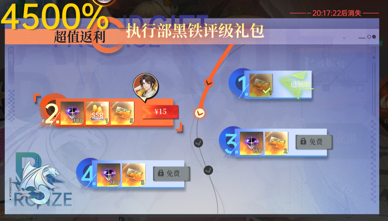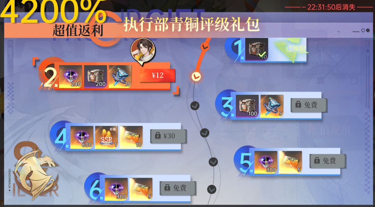 每次队伍评级升级都会弹出来的【执行部XX评级礼包】,这个礼包从黑铁级开始含金量就不断上升。