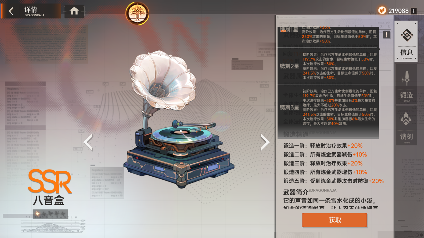 技能讲解:一个爆发式的单体回血,甚至比诺玛的单体奶还要恐怖,但诺玛稳定,这个八音盒却并不稳定。升到3星之后多出来的词条也只是再一次增大奶量。
