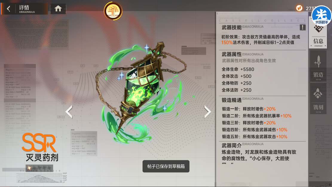 结合上杉绘梨衣的技能特点,推荐使用狮子会密卷和灭灵药剂。狮子会密卷能进一步提升她的攻击力,而灭灵药剂则可以削弱敌方灵值,制造更多输出机会。
