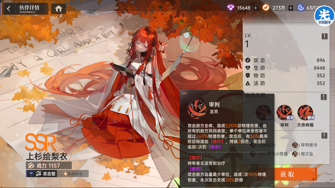3.审判的无视护盾、减伤、分摊的效果让绘梨衣拥有可越过对方前排强势收割后排的能力。