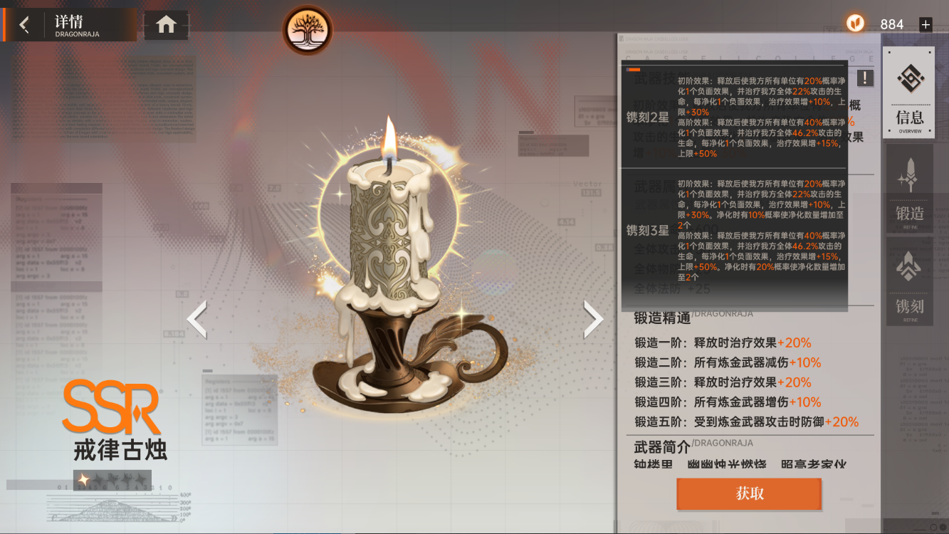 技能讲解:就算他是全体驱散我也不是很看好,因为概率真的太低了,初阶20%完全不够看,高阶的40%才勉强够格,而且奶量也不是很高,想要提升戒律古烛的奶量还通过净化负面效果来提升。升到3星之后也只是使驱散时有概率驱散两个(初阶10%高阶20%,5星时初阶25%高阶50%)