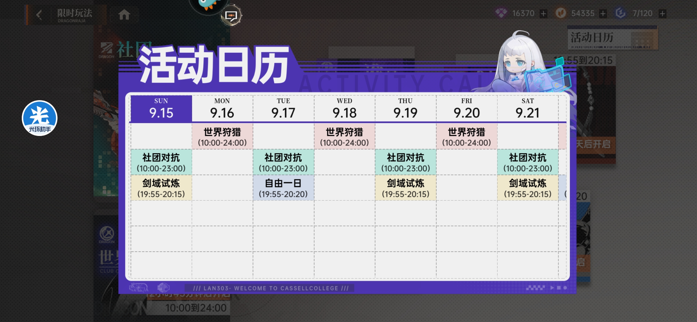 根据活动日历时间开放,每次晚上19.55开启共计20分钟,该玩法为社团团体活动,首先保证参与活动即可获取拍卖分红,造成伤害越高拍卖奖励越好,挑战boss时最好跟随社团一同击打(人少的小团保证10%以上伤害,中等团可以保证50%-70%伤害转下一个boss即可,如果活跃人数不多追求最后一击性价比不高)