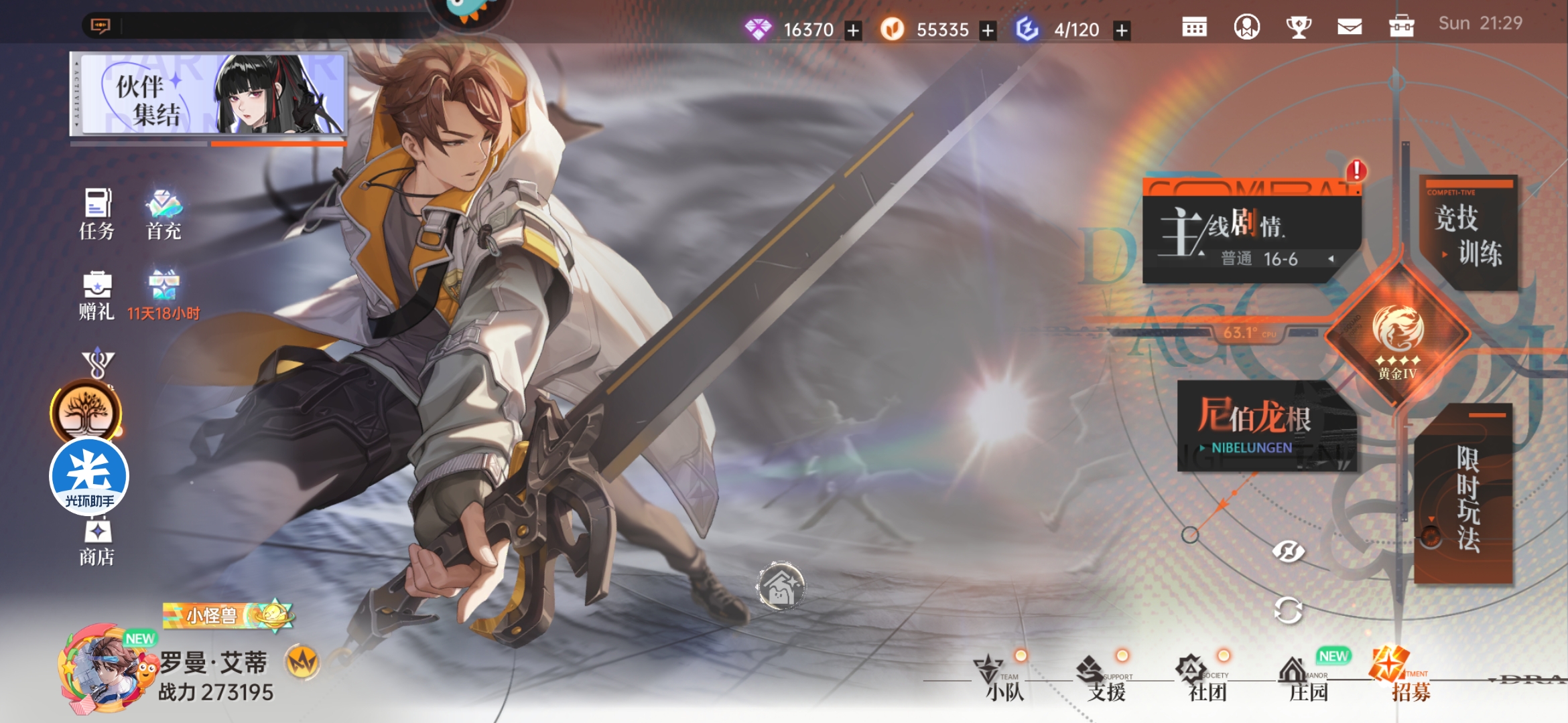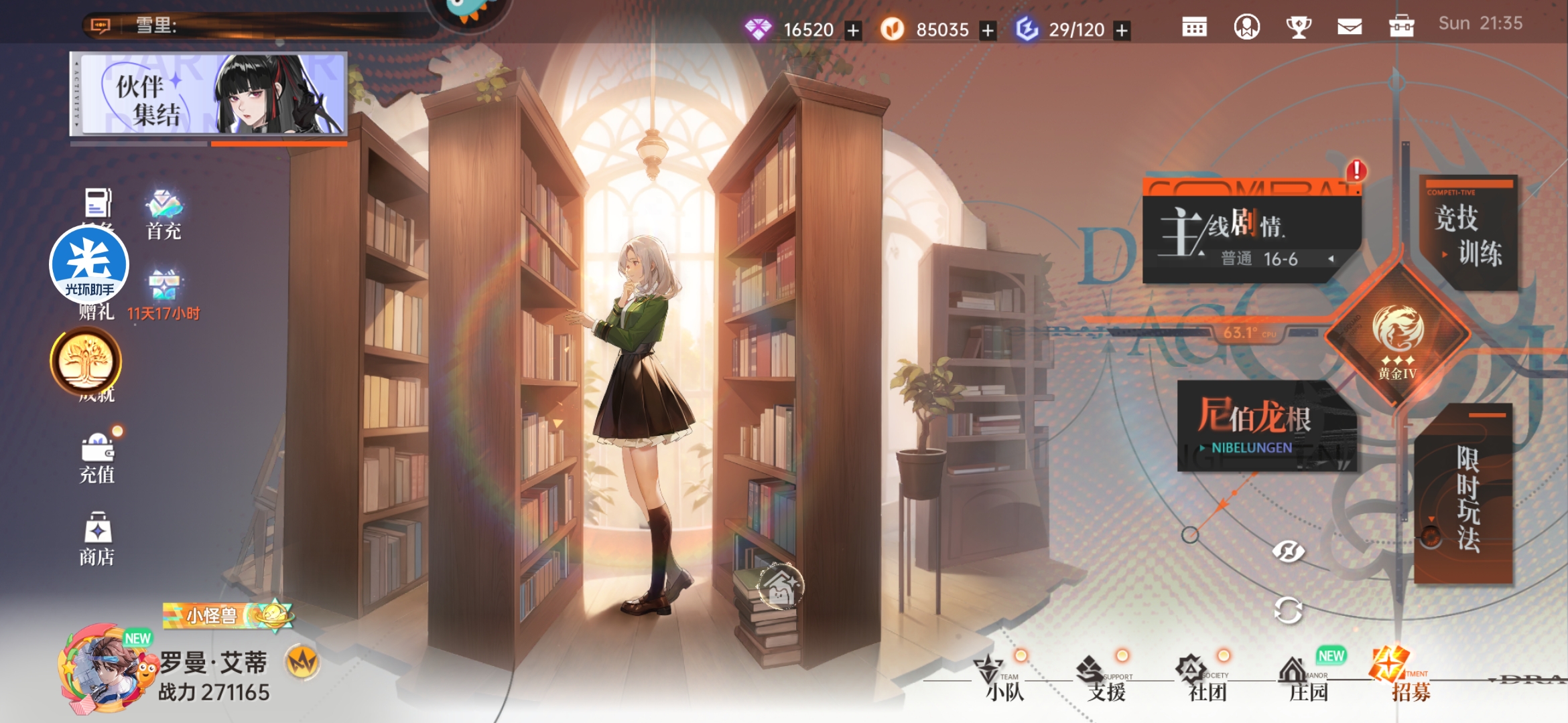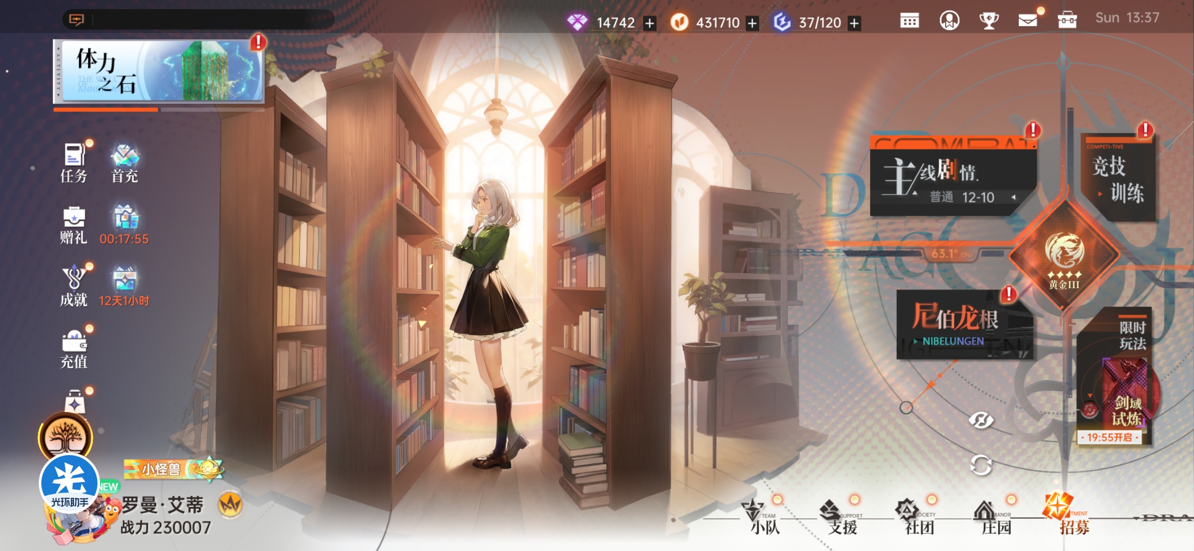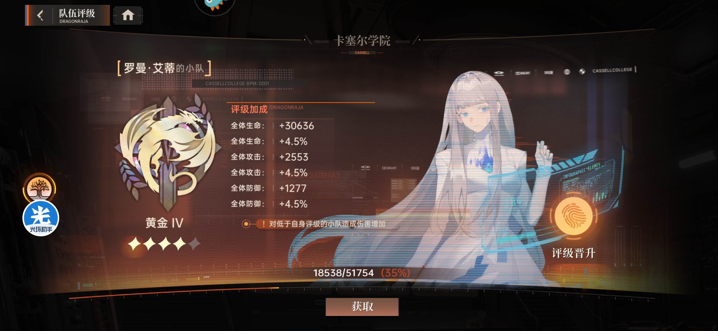 第三天等级黄金4.4,总战力27.3万,主角5.2万,楚子航5.1万,主线副本16-6,轮回石廊113关