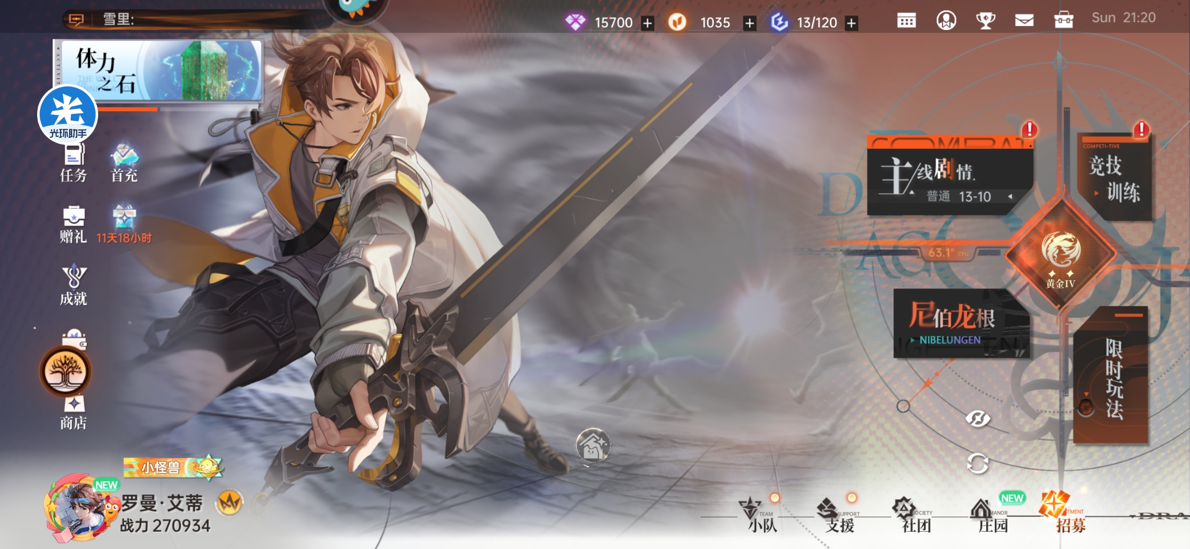第三天登陆游戏完成七日第三天任务,领取大量装备打造和精炼资源,同时领取庄园体力和挂机经验,快速扫荡伙伴突破+5资源,将所有伙伴突破+5,装备突破至蓝色+1,战力达到23万,通关第十二章,随后完成每日任务领取经验小队提升至黄金四,将楚子航和主角装备突破至蓝色+2,扫荡战术演练获取伙伴经验和金币,将伙伴升级至45级,同时挑战轮回石廊至110关,获取装备打造资源,将装备升级至80级,战力提升至27万,通关至15章,卡图至16-6,其中第13关boss相对困难容易卡关,需要合理利用炼金武器(学院风云三天积累的学院赏金和前三天成就和任务赠送的炼金武器碎片可以凑够二星鱼雷或者子弹,随后在设置中将鱼雷和子弹设置为高阶释放,保证伤害收益最大化后即可通关13关boss)最后整合其他资源提升战力即可,第三天社团会有限时活动,按时参与奖励还是不错的